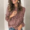 2024 Женская ажурная рубашка с длинными рукавами-трубами, стильный модный топ