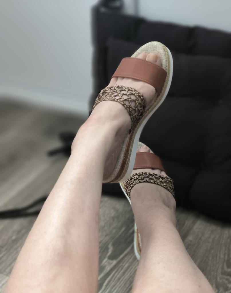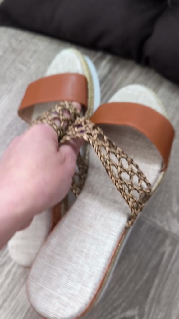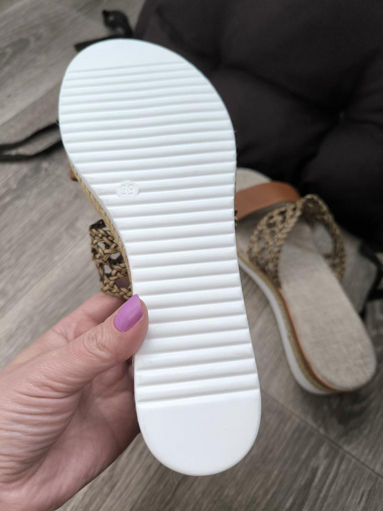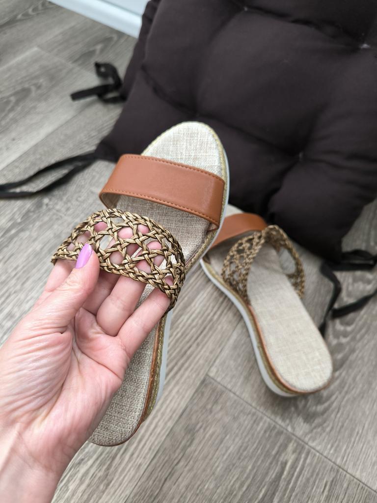 Шлепанцы ❤️ Шлепанцы просто отличные, очень стильно смотрятся на ноге. Понравилось сочетание материалов: коричневая гладкая вставка и это красивое плетение - выглядит очень по-летнему. Платформа высокая, что я люблю, но при этом она устойчивая и удобная. Прошиты аккуратно, золотистый шнурок по краю добавляет изюминку. На стопу 24,5 см отлично подошёл размер 39. Для летнего отпуска или просто на каждый день то, что нужно, рекомендую 👍 Удачных покупок ❤️ Ваша Вика 😊