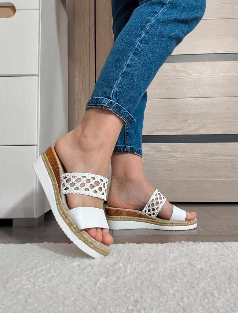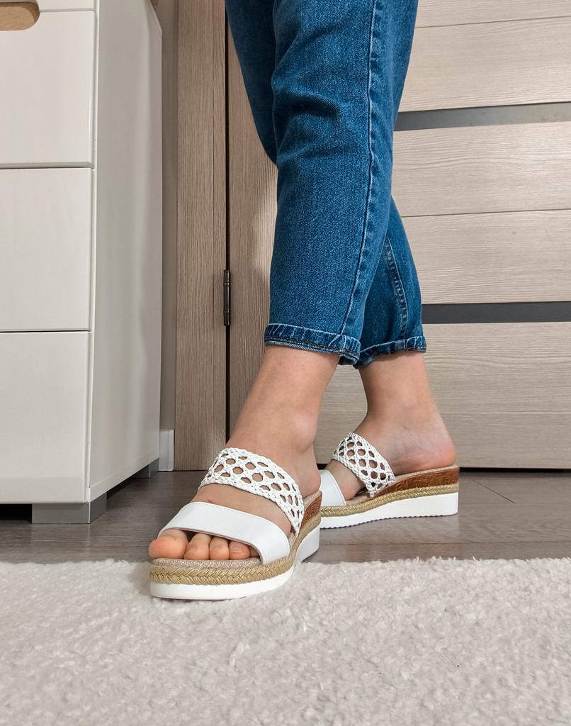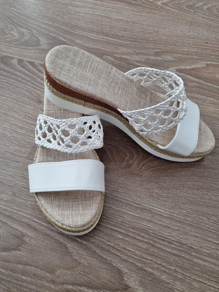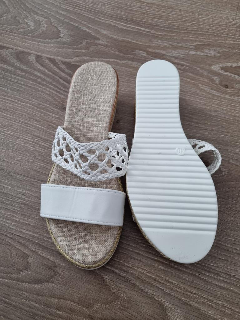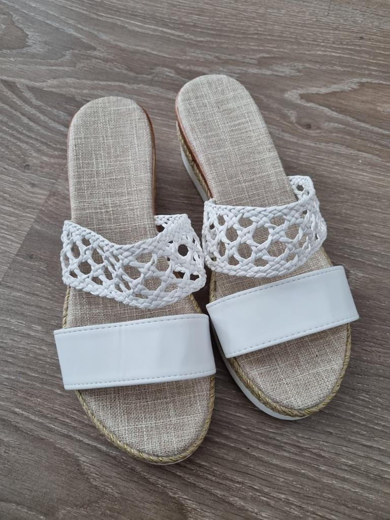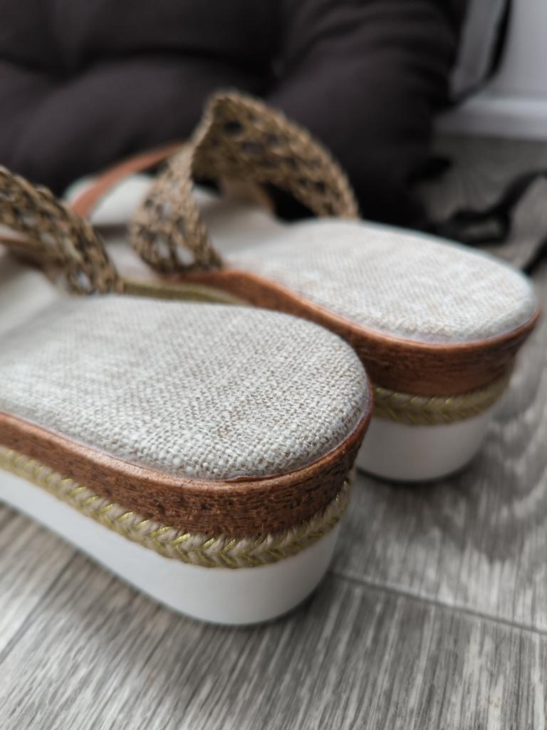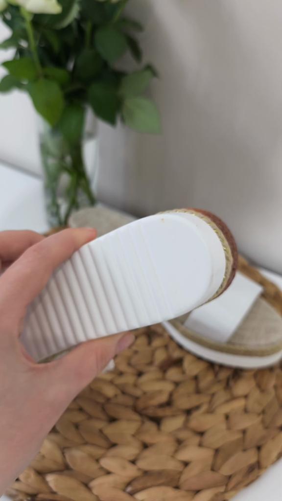 Сандалии-Слайды на Платформе. 🔸На выбор множество расцветок и размеров. На мне 38, идеальны на стопу 23,5 см. 🔸Дизайн: Белые шлепанцы/слайды с двумя ремешками (один гладкий, другой плетеный/ажурный). 🔸Подошва: Устойчивая танкетка/платформа с отделкой под джут/эспандрилью. 🔸Использование: Комфортная и стильная обувь для пляжа или повседневных летних прогулок. Рекомендую 👍 Ставлю ⭐ ⭐ ⭐ ⭐ ⭐ Спасибо продавцу ❤️ и Joom ❤️