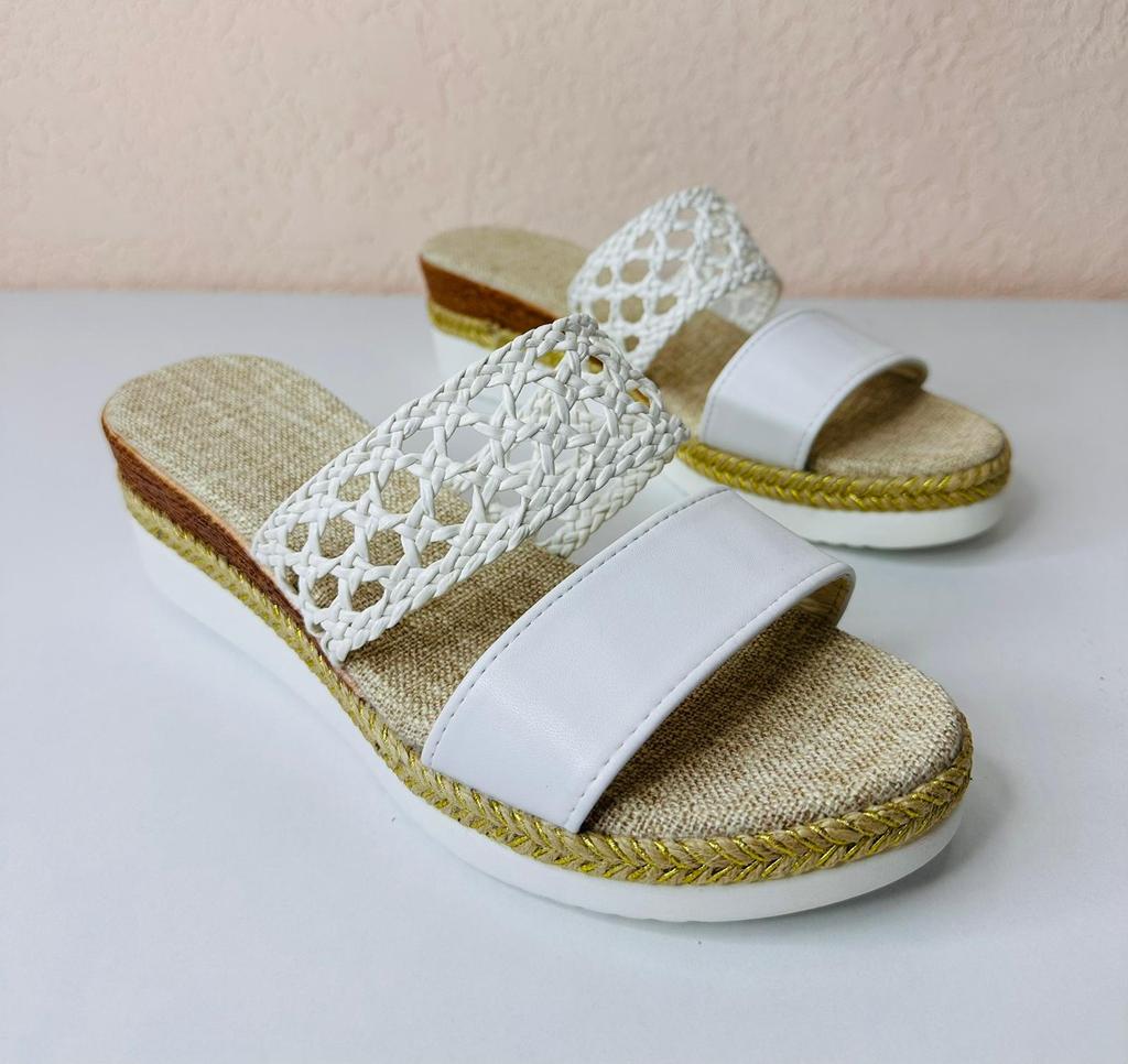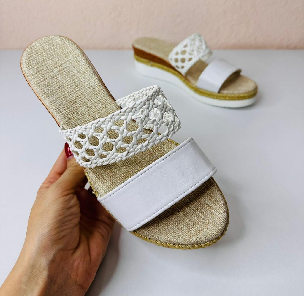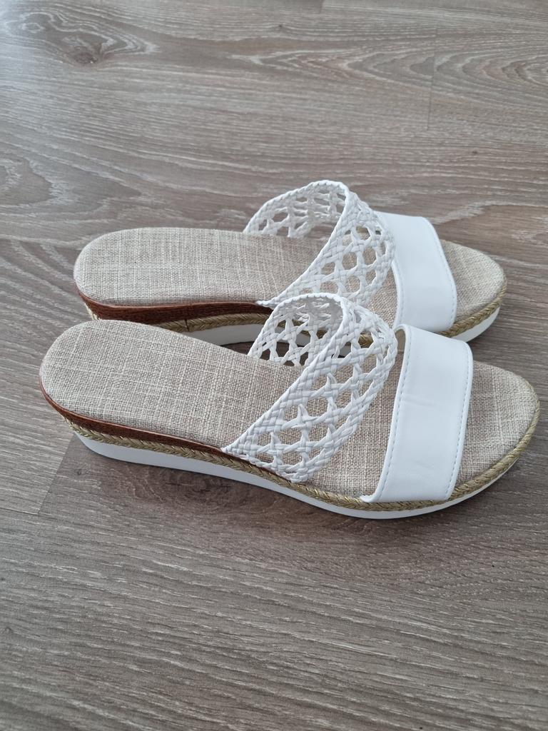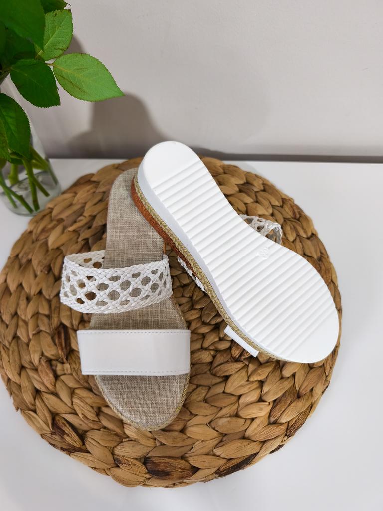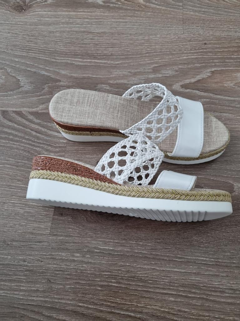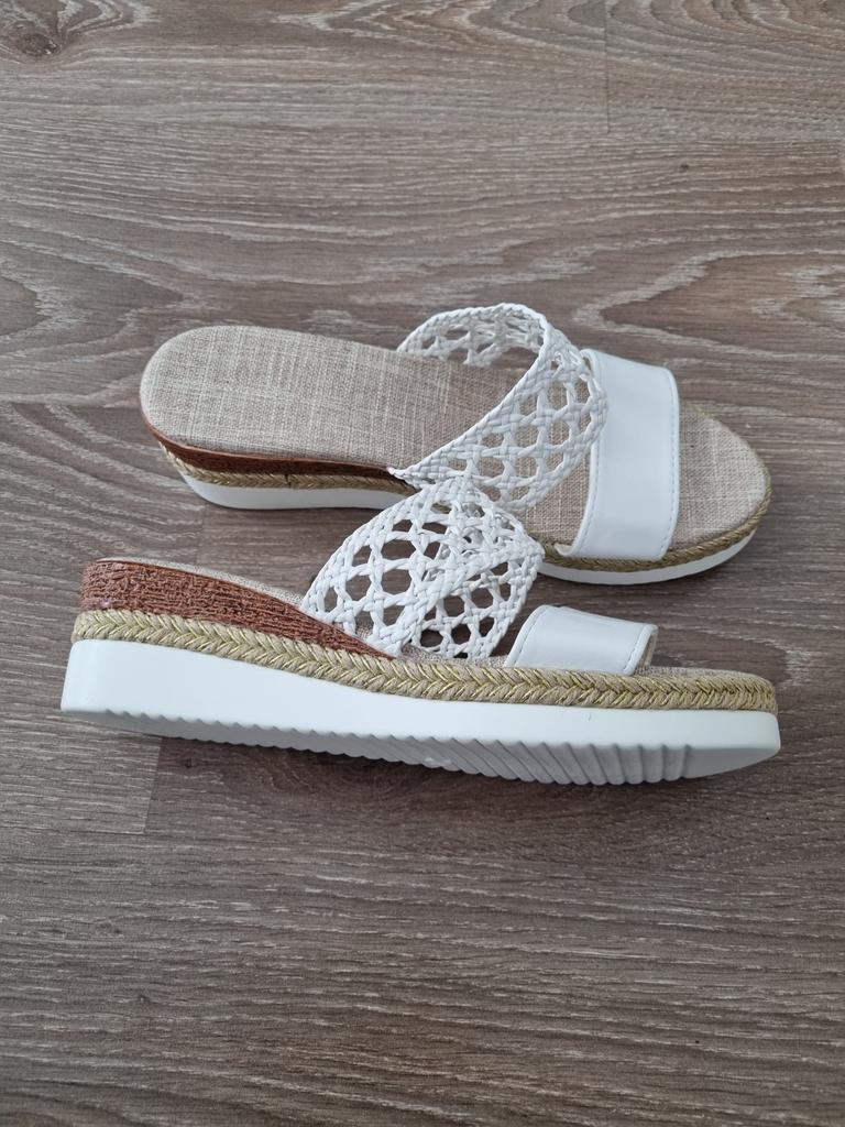 Сандалии-Слайды на Платформе. 🔸На выбор множество расцветок и размеров. На мне 38, идеальны на стопу 23,5 см. 🔸Дизайн: Белые шлепанцы/слайды с двумя ремешками (один гладкий, другой плетеный/ажурный). 🔸Подошва: Устойчивая танкетка/платформа с отделкой под джут/эспандрилью. 🔸Использование: Комфортная и стильная обувь для пляжа или повседневных летних прогулок. Рекомендую 👍 Ставлю ⭐ ⭐ ⭐ ⭐ ⭐ Спасибо продавцу ❤️ и Joom ❤️