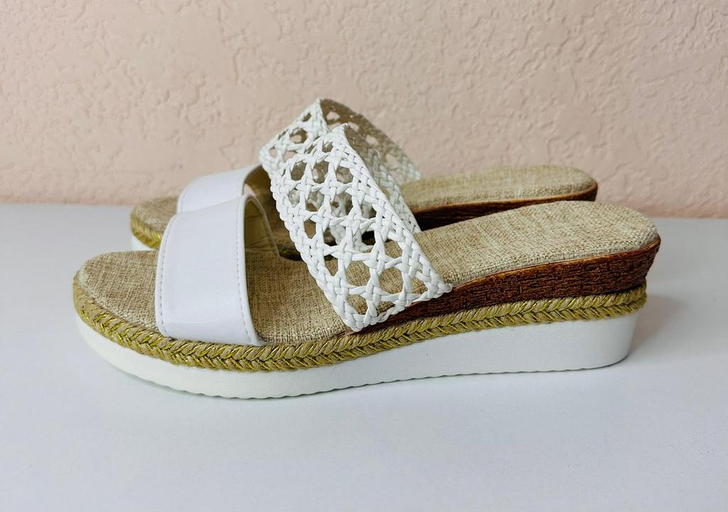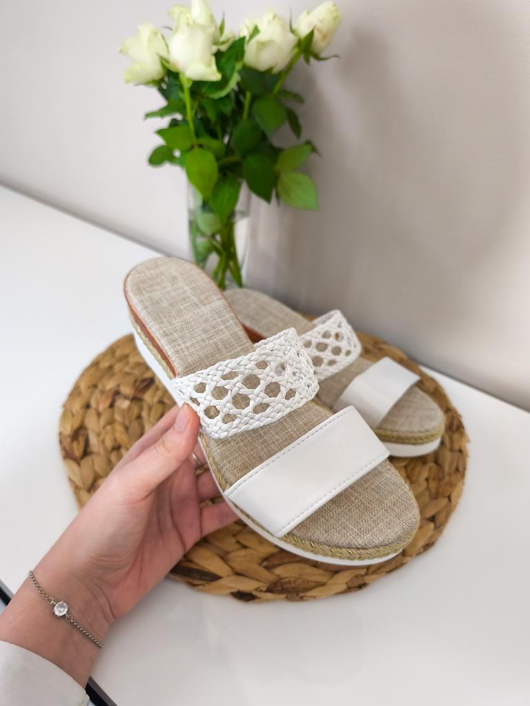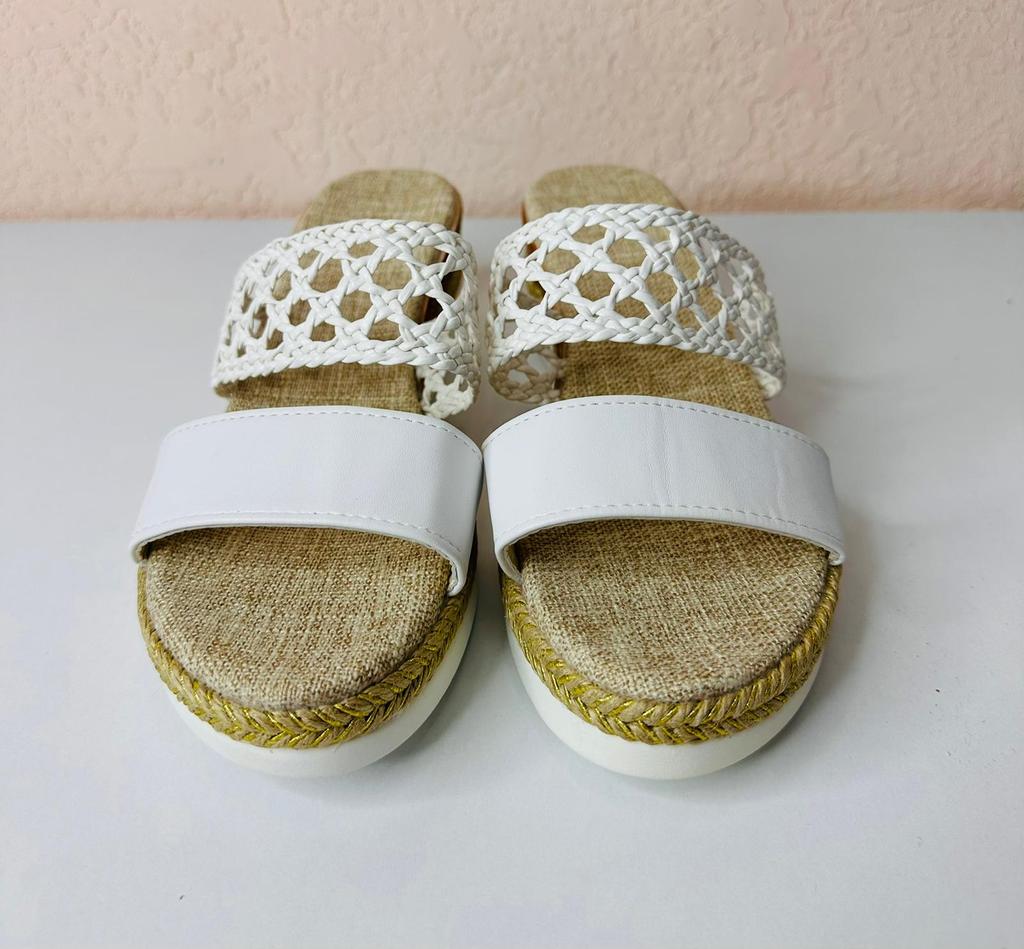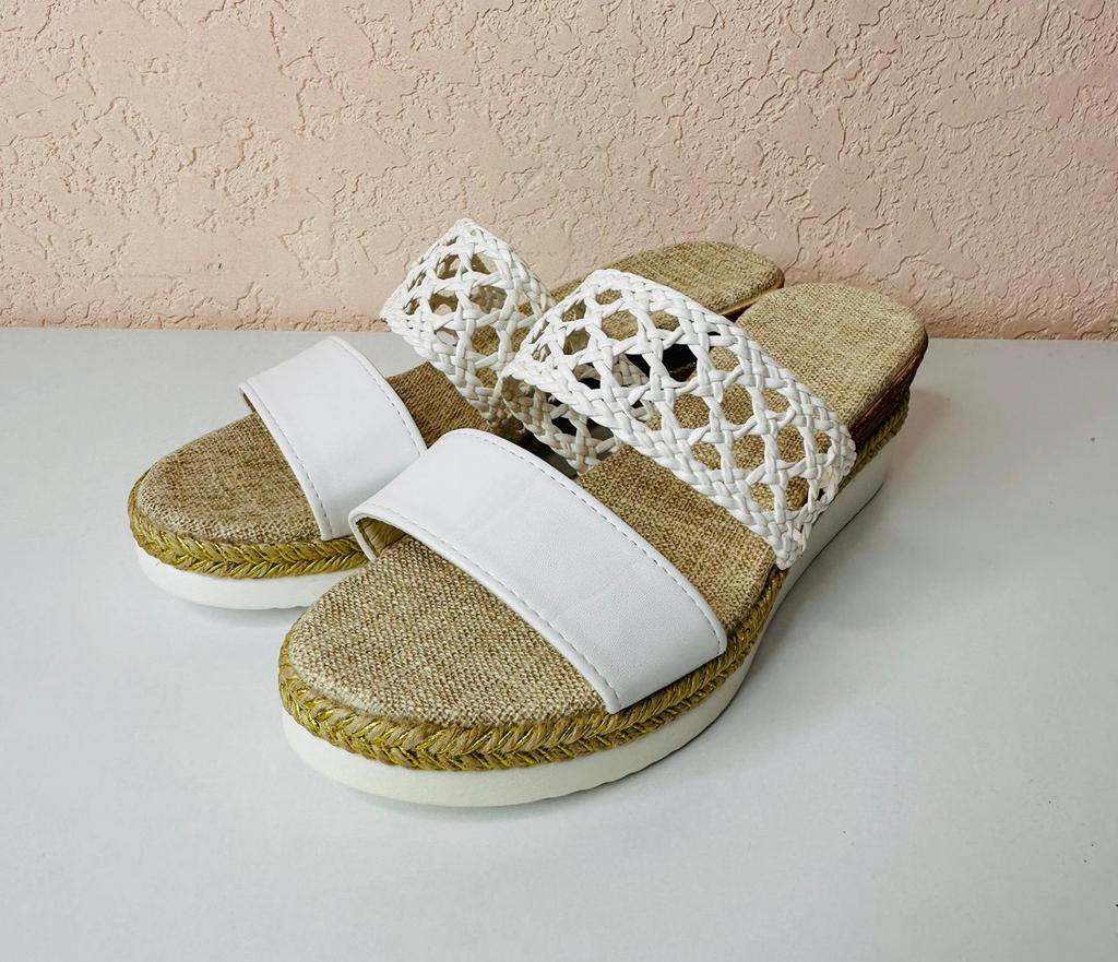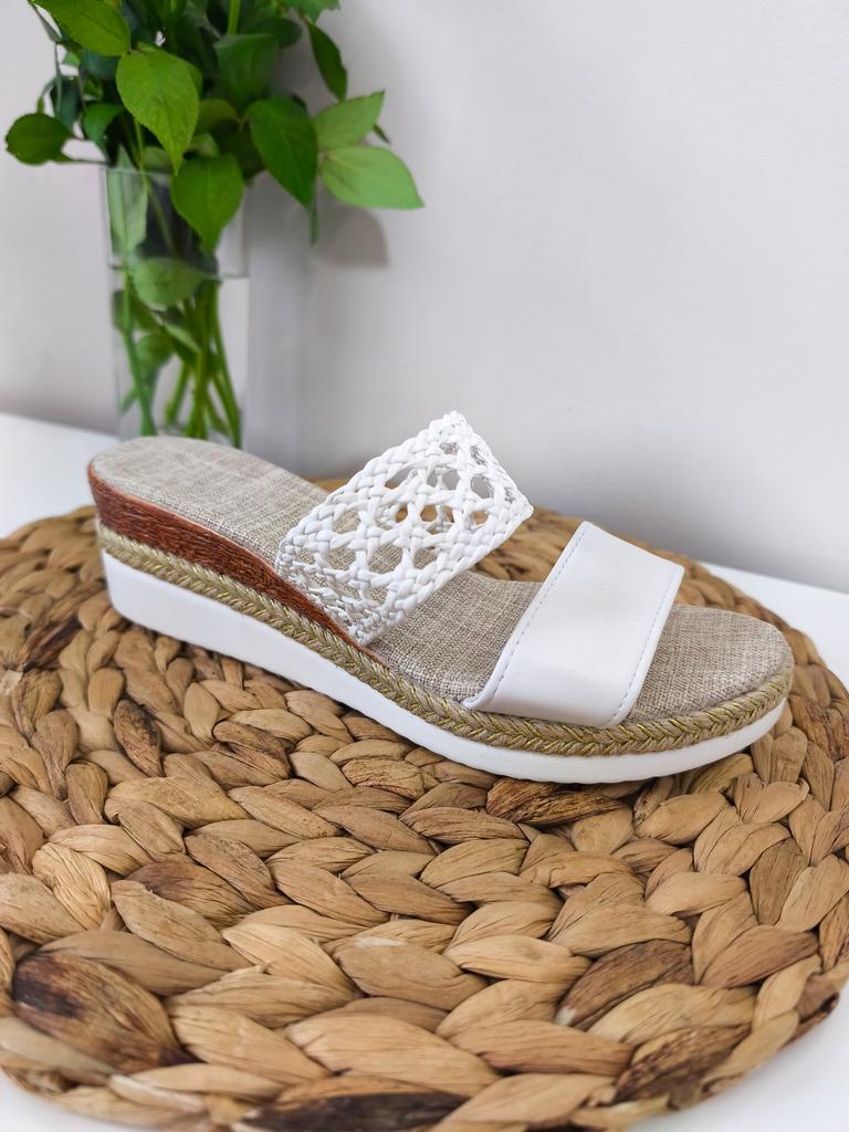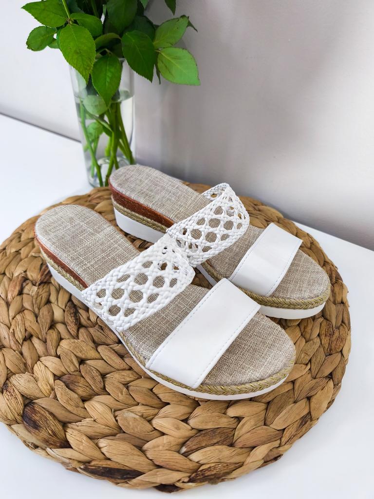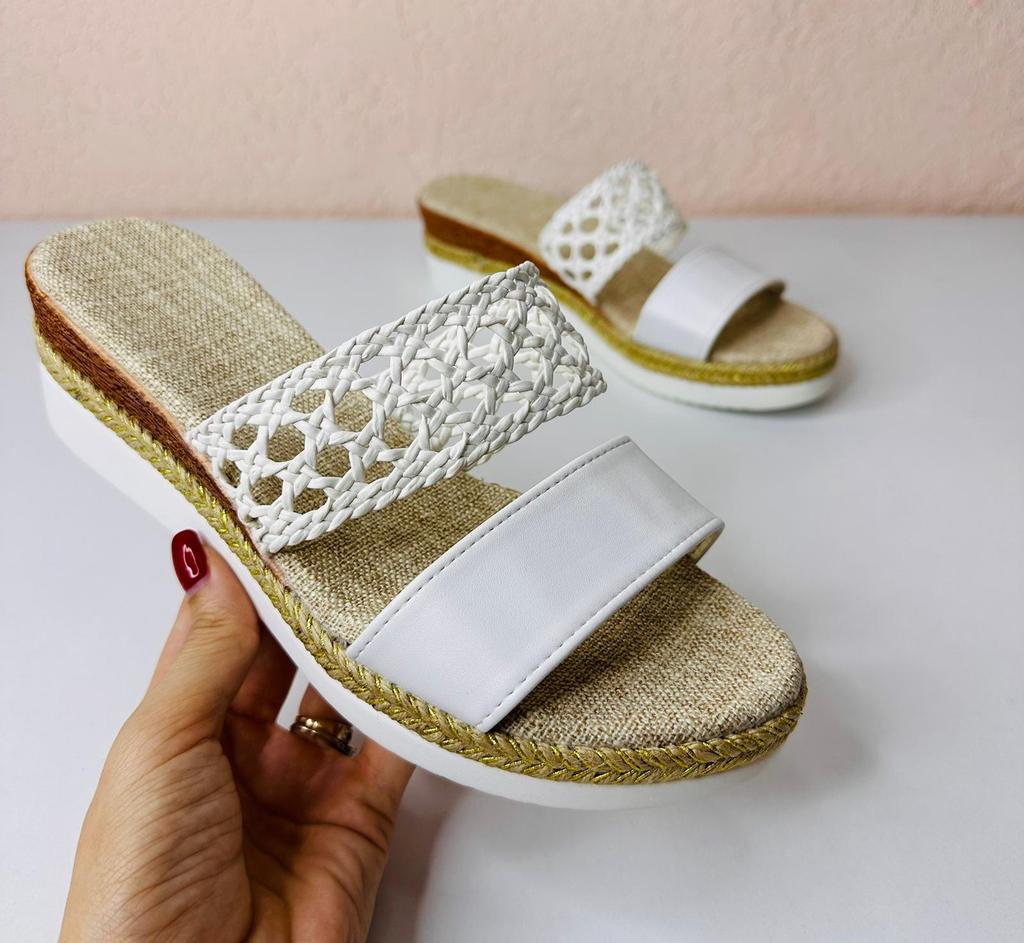 Сандалии-Слайды на Платформе. 🔸На выбор множество расцветок и размеров. На мне 38, идеальны на стопу 23,5 см. 🔸Дизайн: Белые шлепанцы/слайды с двумя ремешками (один гладкий, другой плетеный/ажурный). 🔸Подошва: Устойчивая танкетка/платформа с отделкой под джут/эспандрилью. 🔸Использование: Комфортная и стильная обувь для пляжа или повседневных летних прогулок. Рекомендую 👍 Ставлю ⭐ ⭐ ⭐ ⭐ ⭐ Спасибо продавцу ❤️ и Joom ❤️