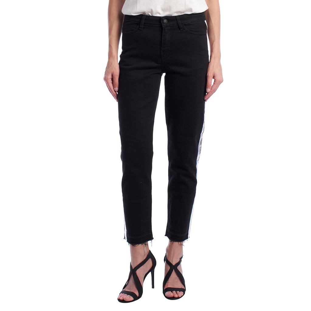 Эти джинсы Zadig & Voltaire отличаются современным дизайном с блестящим акцентом.. Прямой крой средней посадки дополнен боковой полосой с металлизированной отделкой, которая проходит по обеим штанинам, создавая непринужденный, но характерный стиль.. Рваный низ добавляет городской шик, а его пошив из структурированного денима обеспечивает комфорт и форму.