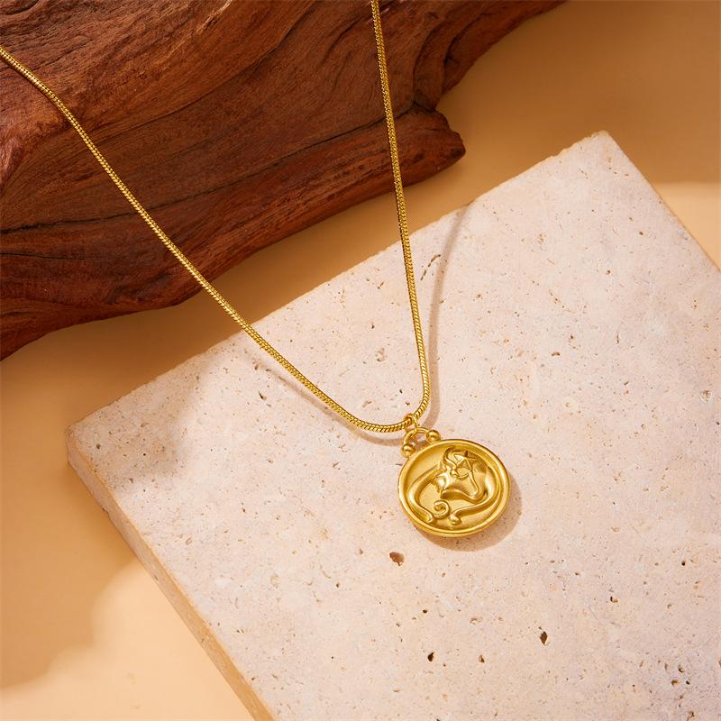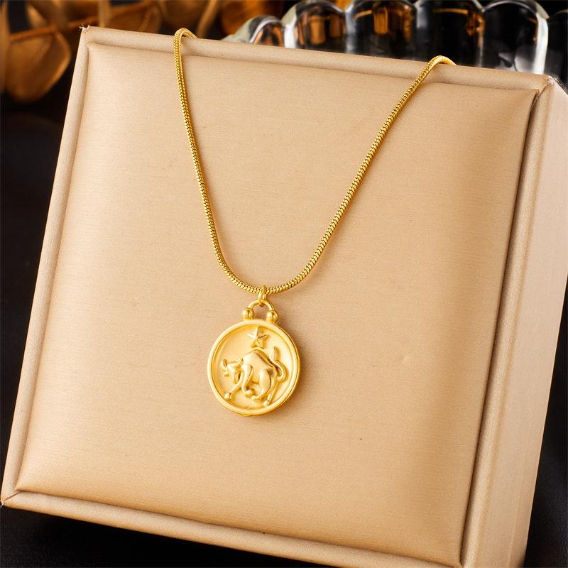 Ретро Новое Круглое Двустороннее Ношение Подвеска 12 Знаков Зодиака Титановая Сталь Ожерелье Ювелирные Изделия