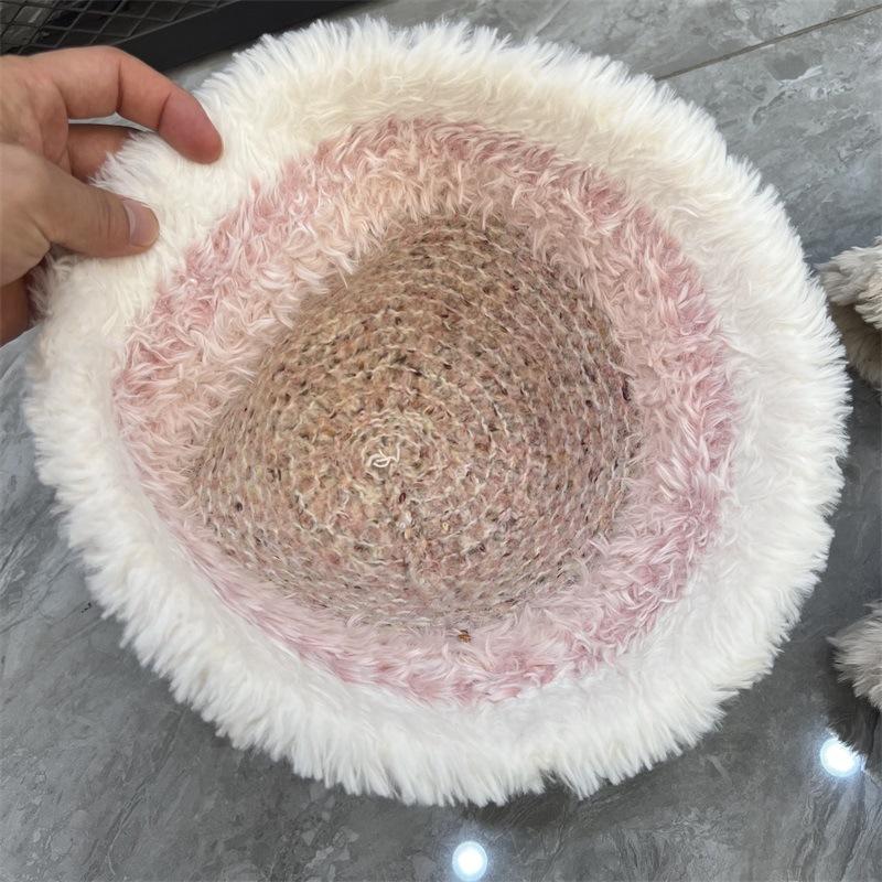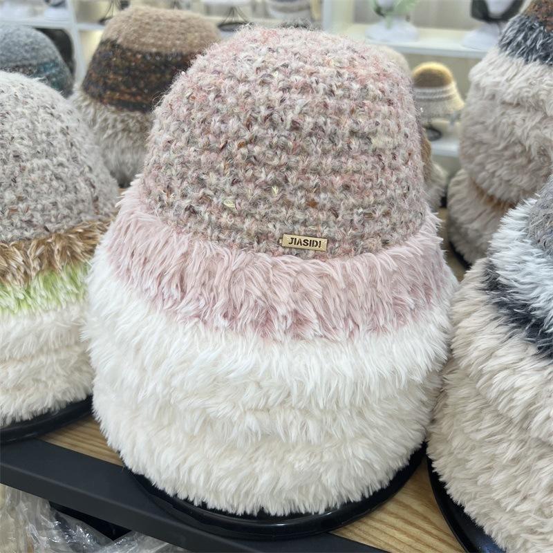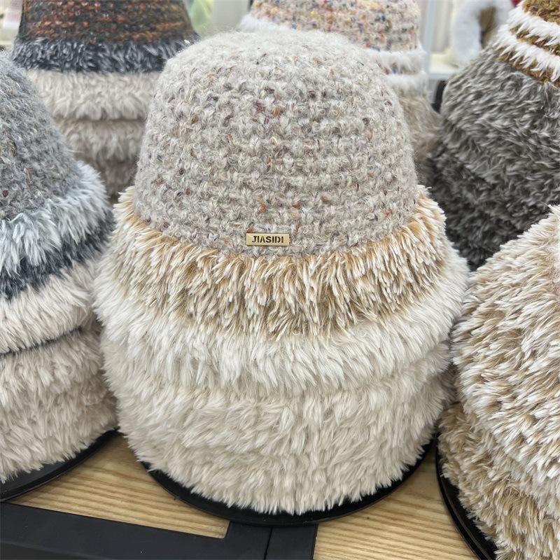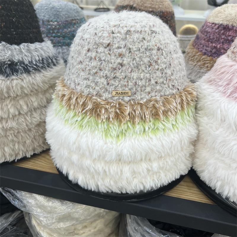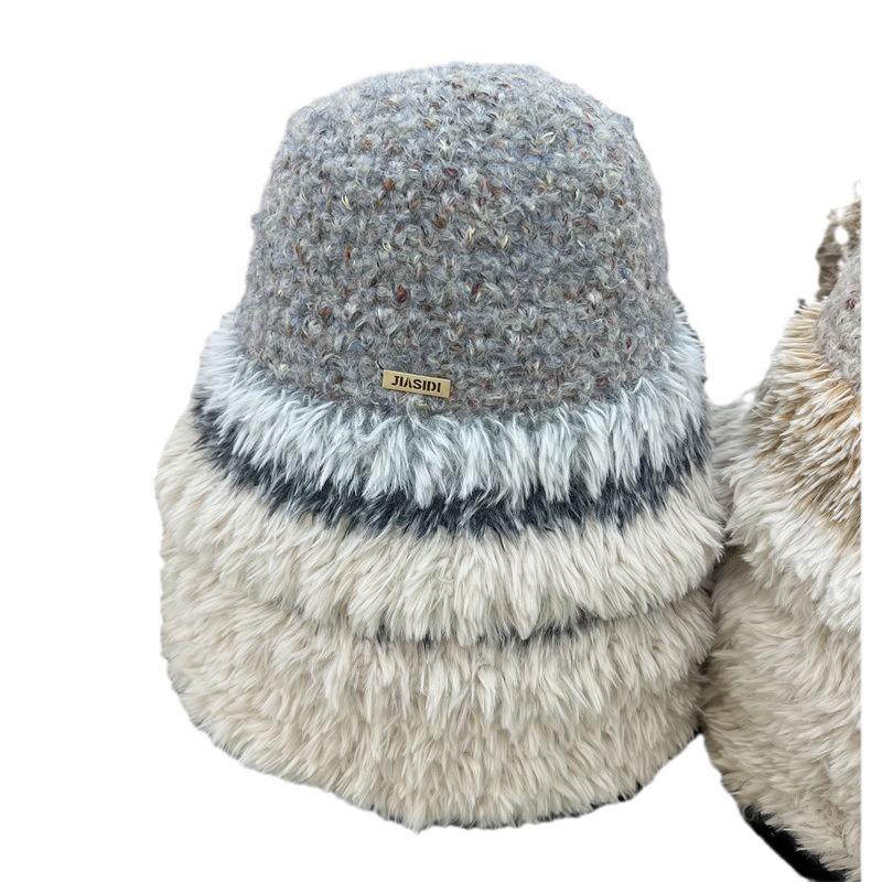 Plush knitted new autumn and winter striped thickened fisherman's hat children's ear protection cold personalized bucket hat tide