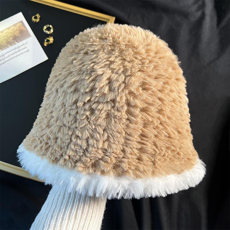 Плюшевая панама женская осенне-зимняя вязаная шляпа-ведро зимняя теплая панама