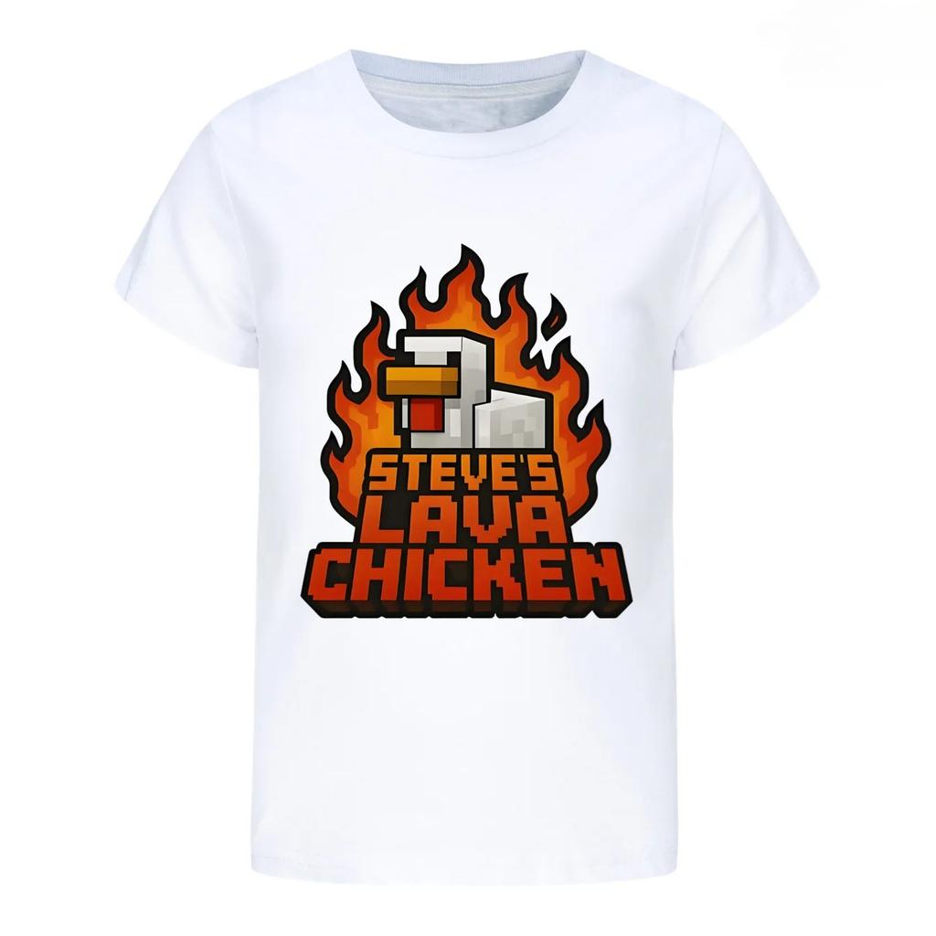 2025 Футболки для девочек Летняя одежда с коротким рукавом Детская мультяшная футболка Костюм курицы лавы Стива Детская одежда с коротким рукавом