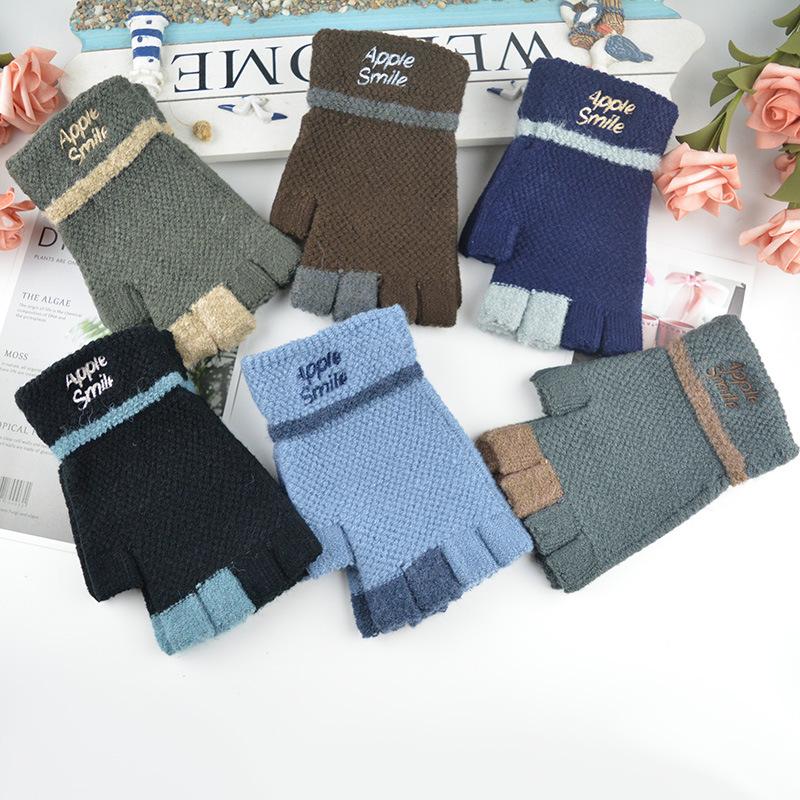 Новые мужские перчатки без пальцев зимние студенческие жаккардовые для письма уличные теплые шерстяные вязаные перчатки