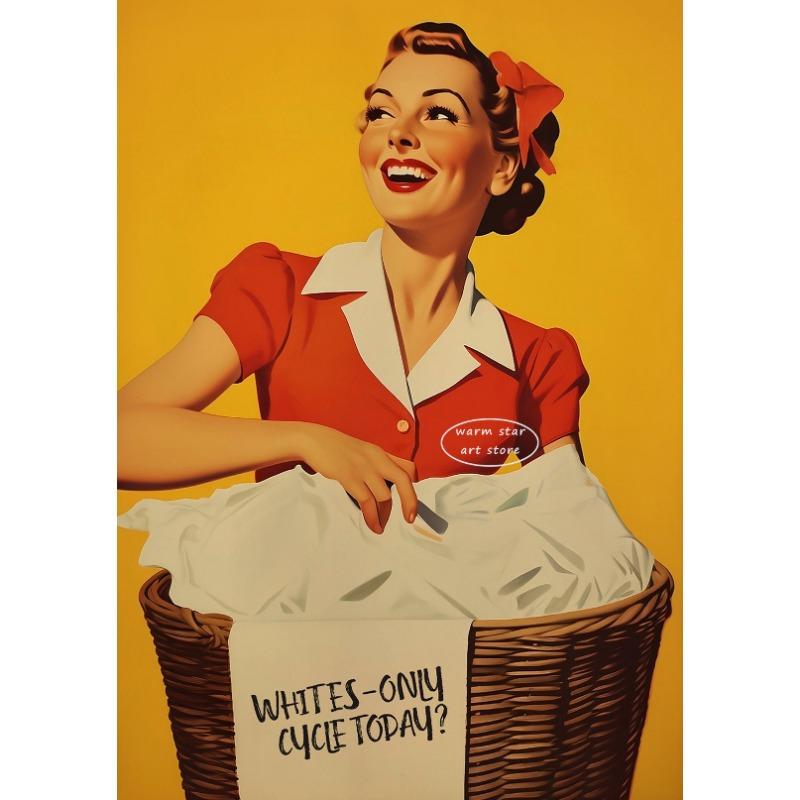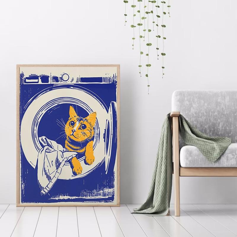 День стирки Женщина Стиральная машина Кот Настенное искусство Холст Живопись Скандинавский Постер Принт Туалетные картинки для украшения гостиной