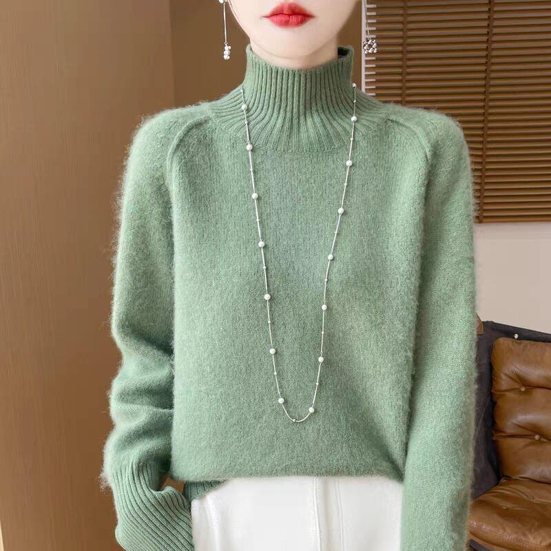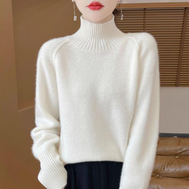 Женский утолщенный однотонный свитер с длинным рукавом, облегающий, свободный, универсальный, вязаный базовый свитер, корейский