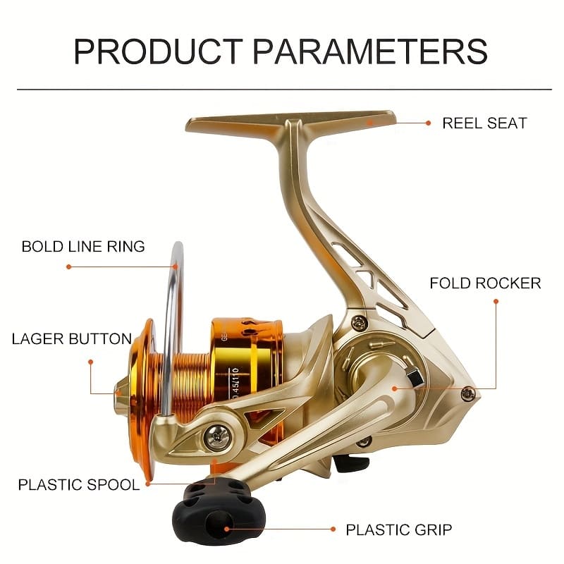 Полностью металлический покрытый спиннинговый катушка 5.2:1 Высокоскоростное передаточное число Легкая катушка для ловли приманкой Складная рукоятка Подходит для пресной и соленой воды