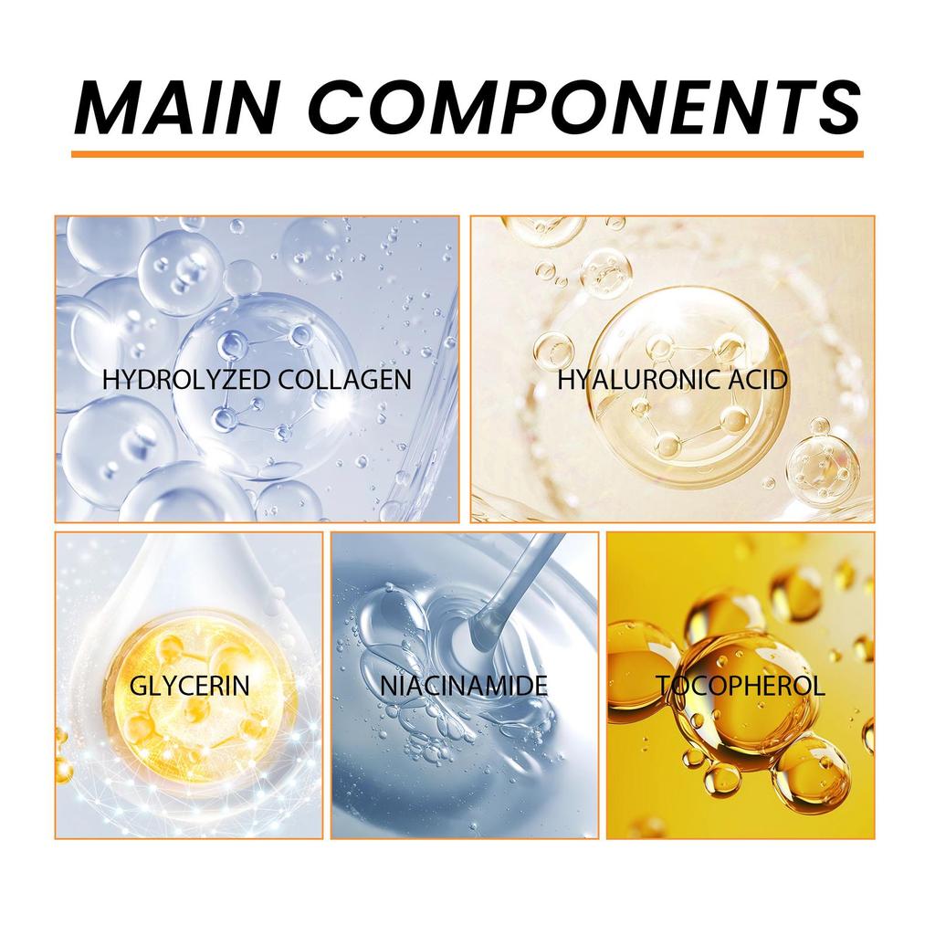 Основными ингредиентами этой маски для глаз являются коллаген и гиалуроновая кислота. Коллаген — ключевое вещество для эластичности и упругости кожи. С возрастом кожа вокруг глаз теряет коллаген, что приводит к провисанию кожи и появлению мелких морщин.. Коллаген, содержащийся в гидрозольной маске для глаз EELHOE Collagen, глубоко проникает в кожу вокруг глаз, чтобы восполнить потерянный коллаген и повысить эластичность кожи, делая кожу вокруг глаз снова упругой и наполненной.. Гиалуроновая кислота — мощный увлажняющий ингредиент, который поглощает большое количество воды, обеспечивая длительное увлажнение кожи вокруг глаз, поддерживая ее увлажненной в любое время и эффективно улучшая мелкие морщинки и тусклость, вызванные сухостью.