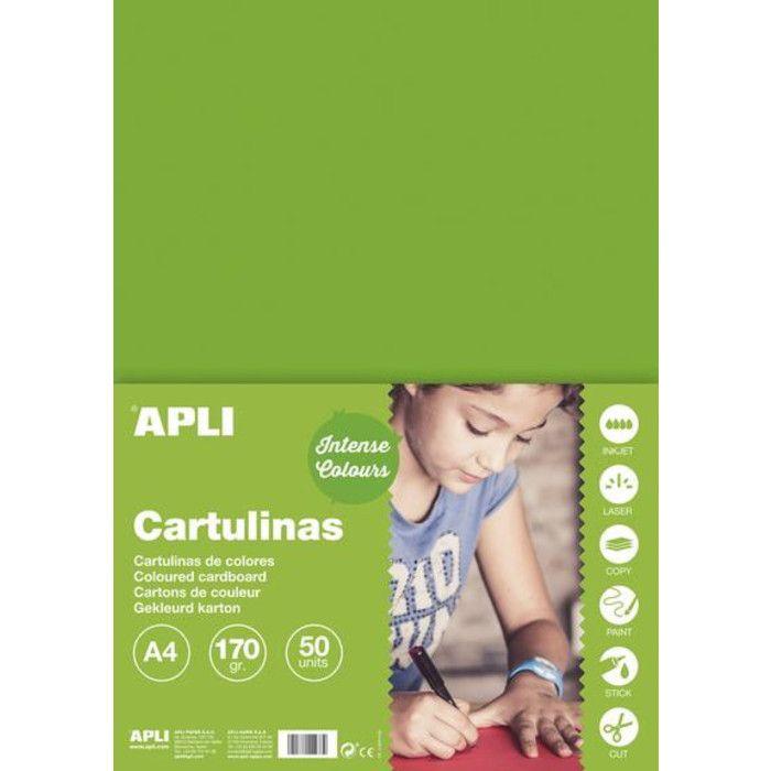 Apli 14240 - Carton de couleur vert pré Format A4 180gr. 210x297mm