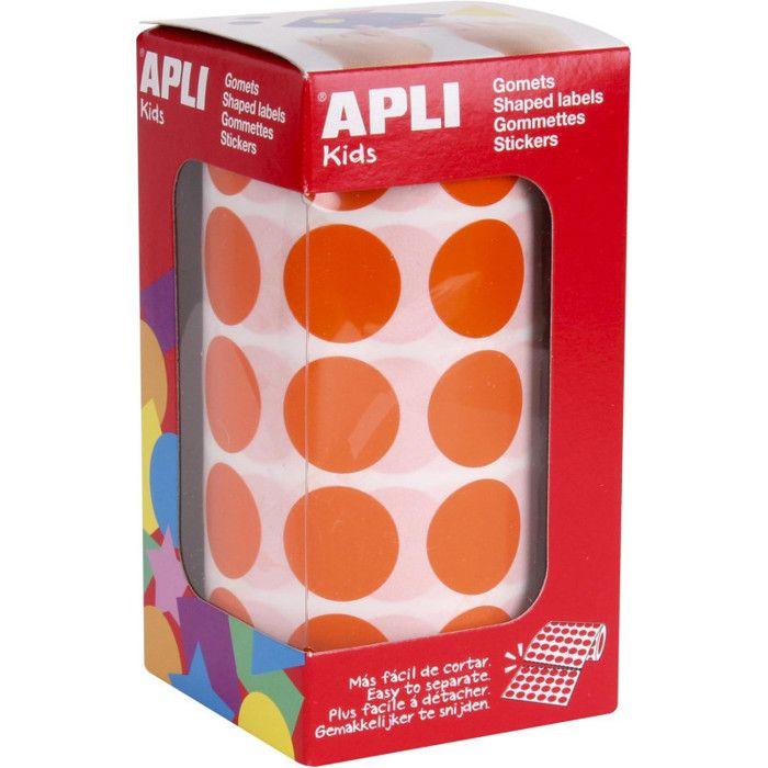 Rouleau de Gommettes Rondes - APLI - 1770 - 20 mm - Orange - Adhésif permanent