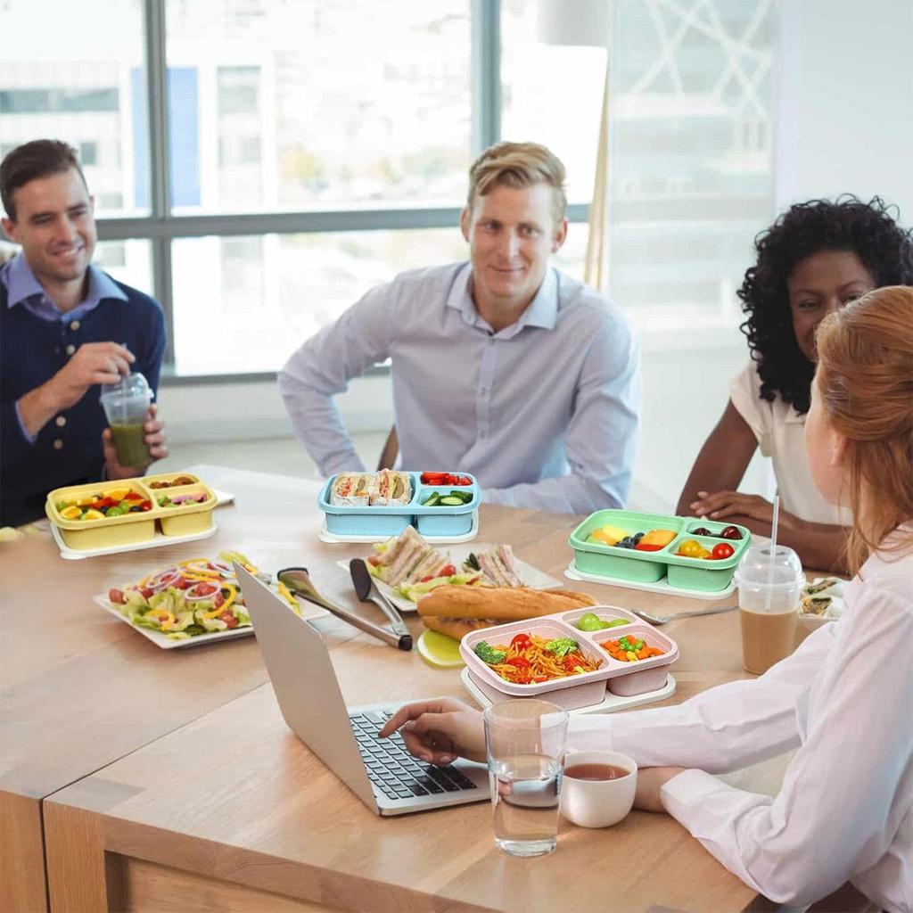 Коробка для закусок Bento, коробка для хранения продуктов с 3 отделениями, коробка для ланча Straw Meal Prep, пластиковая коробка для хранения продуктов, можно использовать в микроволновой печи и мыть в посудомоечной машине