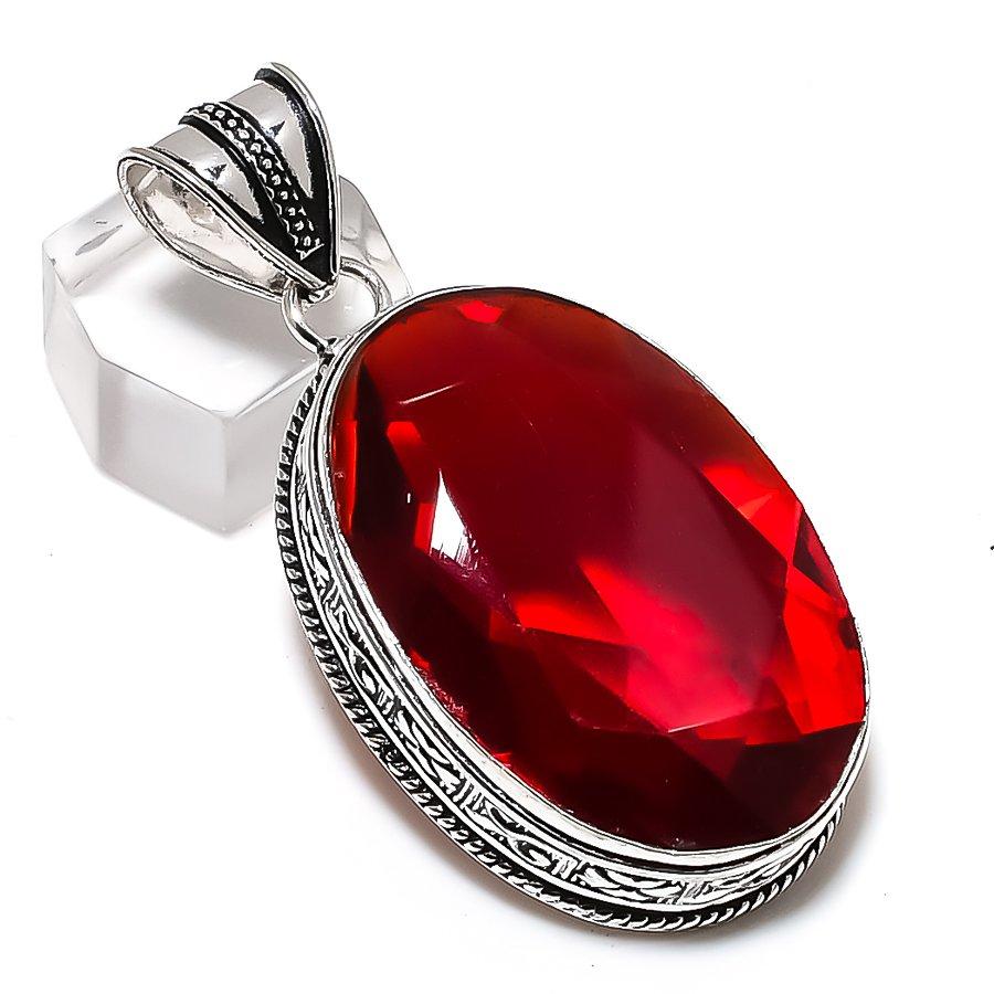 Подарочный кулон ручной работы из стерлингового серебра 925 пробы с натуральным мозамбикским гранатом 2,29 дюйма