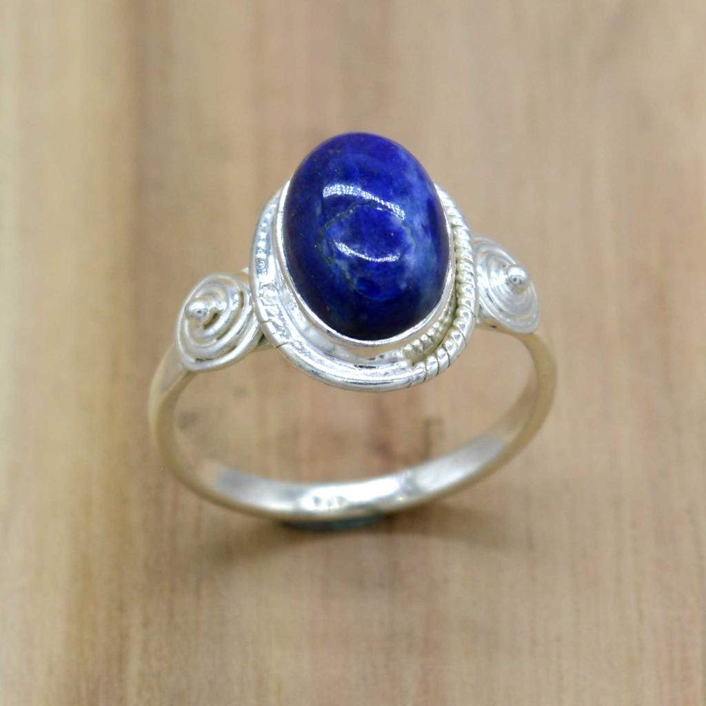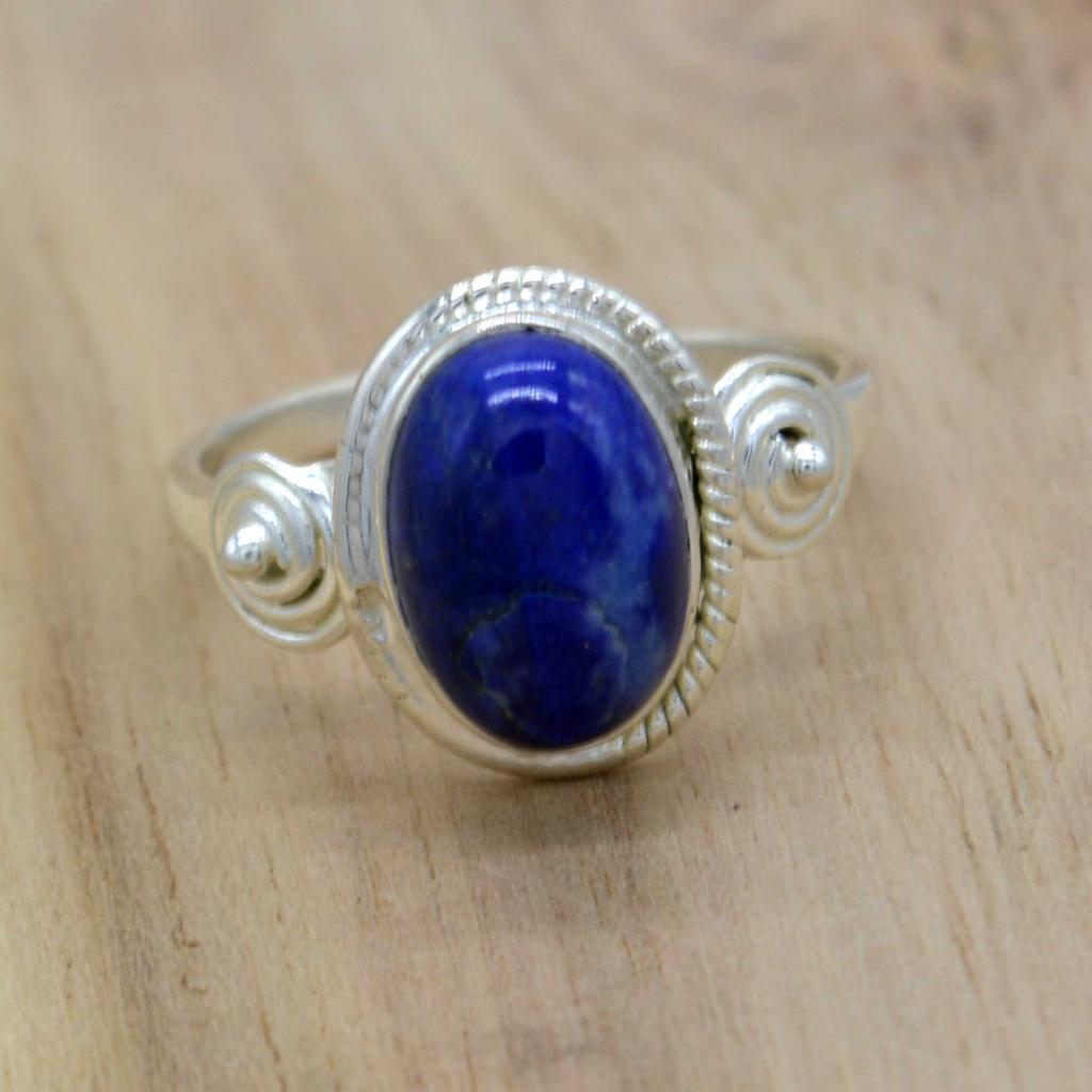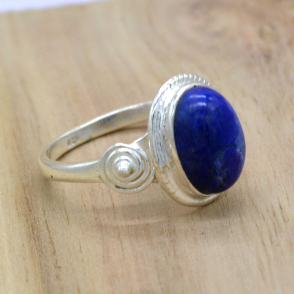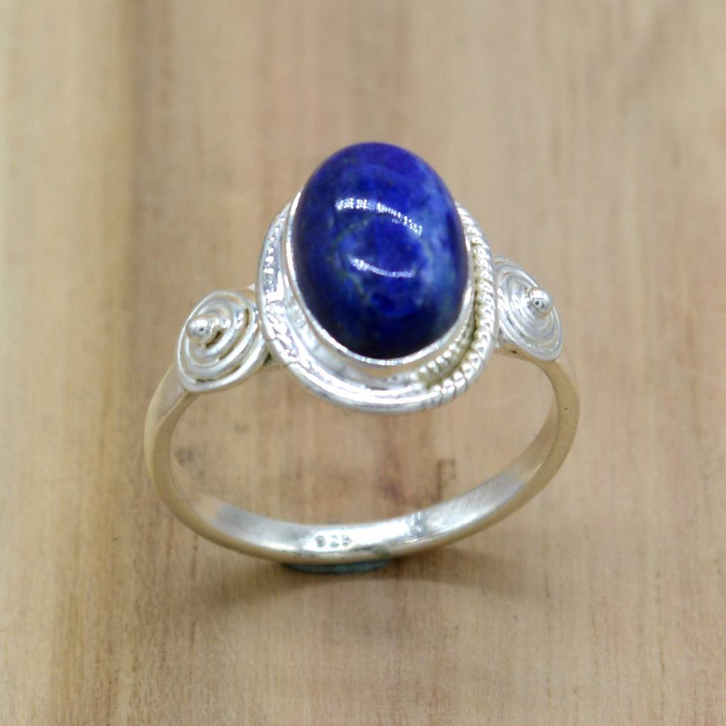 Драгоценный камень: Кольцо с лазуритом, драгоценный камень, стерлинговое серебро, женское украшение
