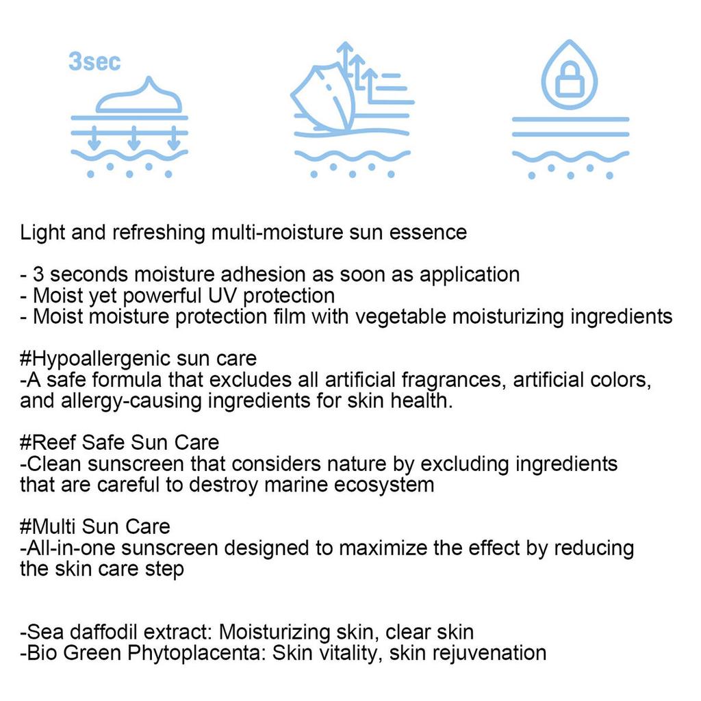 Освежающая и увлажняющая солнцезащитная эссенция, обеспечивающая защиту от УФ-лучей и обильное увлажнение. Этот продукт «все в одном» обогащен увлажняющими ингредиентами растительного происхождения.