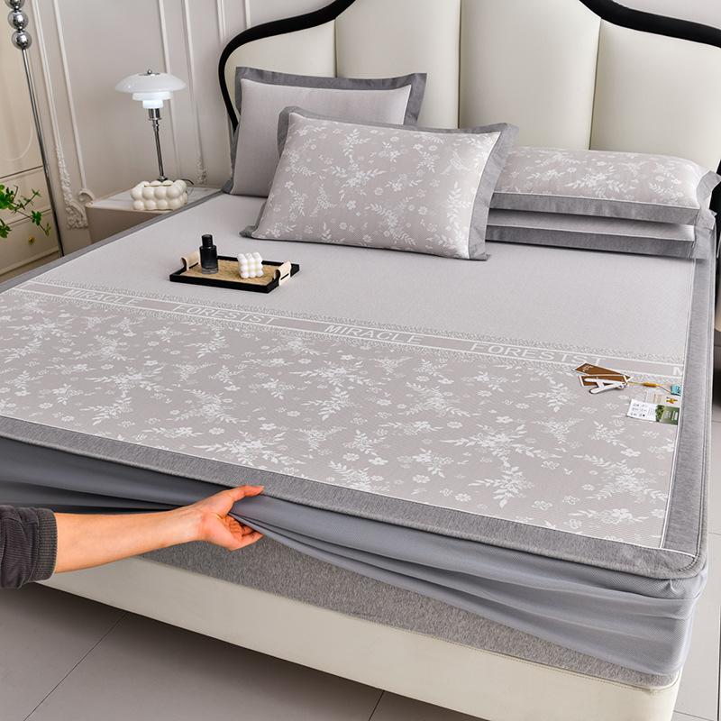 Летний матрас из ледяного шелка, маленький жаккардовый, трехкомпонентный набор, прохладный коврик из ледяного шелка, матрас, полностью закрывающий защитный чехол, коврик для кондиционера, покрывало