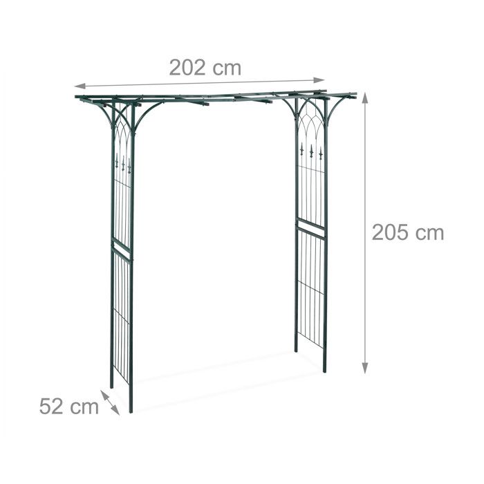 Relaxdays Металлическая арка для роз, Арка для вьющихся растений, Прямоугольная, В x Ш x Г: 205 x 202 x 52 см, темно-зеленый