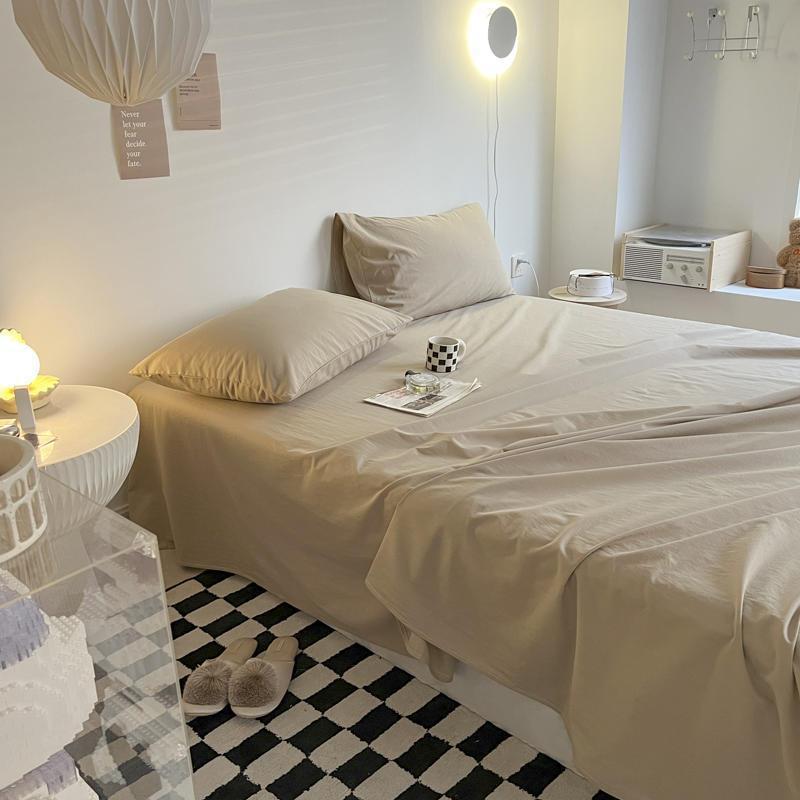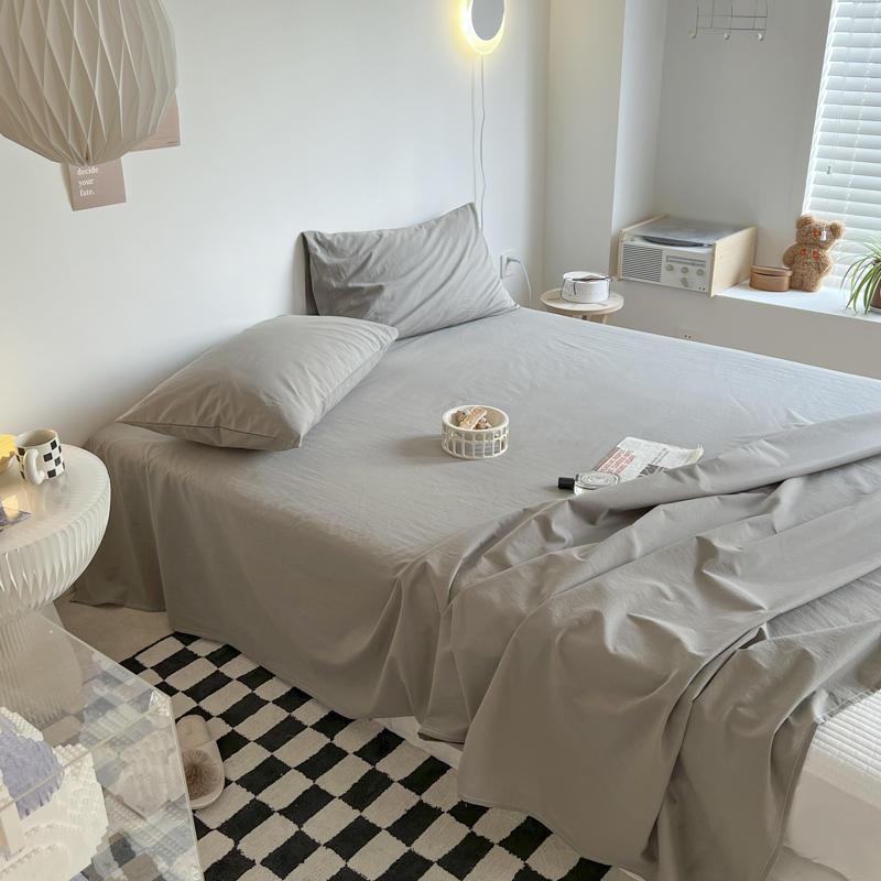 2025 весна и лето маленькие свежие однотонные простыни одна штука новые клетчатые простыни не скатывающиеся приятные к коже утолщенное одеяло односпальная кровать шапка