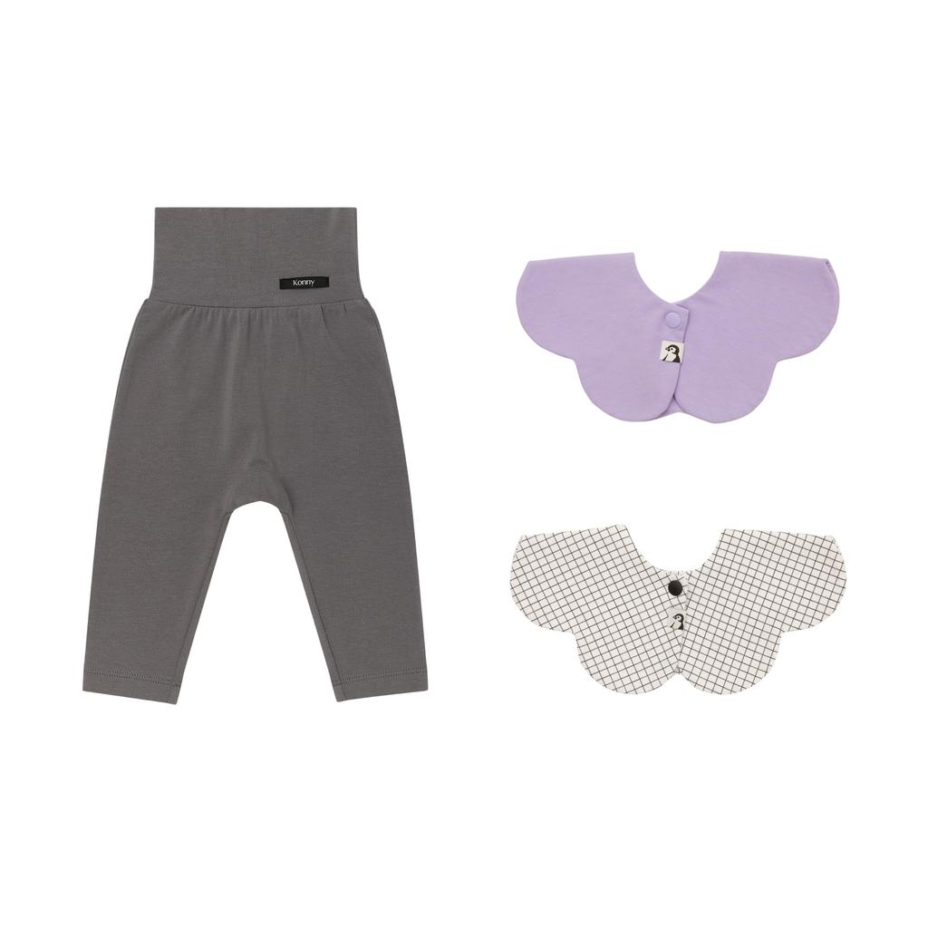 Мягкие модальные леггинсы с высокой талией 1 шт. слюнявчик 2 шт. 6 м [Konny] + G-set (Угольный, Лавандовый, Клетка)