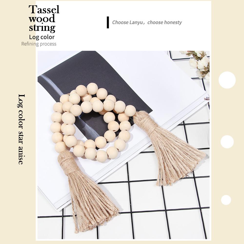Орнамент Гирлянда ручной работы Домашний декор с джутом Деревенская гирлянда из деревянных бусин Кисточки Веревка Настенный подвес