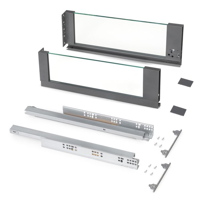 Emuca Tiroir Extérieur Vertex 40kg côtés en verre 178mm de haut, 450mm de profondeur, Acier & Aluminium et Verre, Gris Anthracite