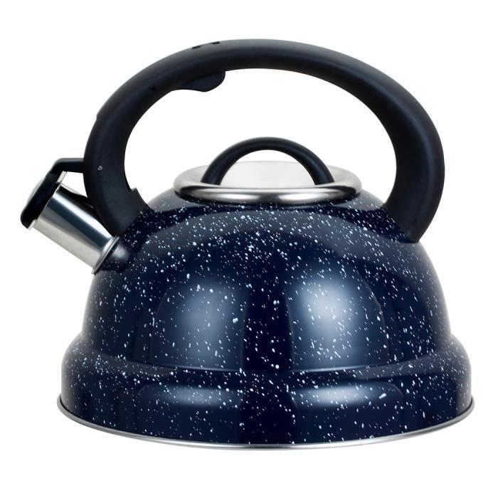 Bouilloire sifflante - ROSSETTO - 3L - Inox 18/10 - Bleu - Poignée soft touch