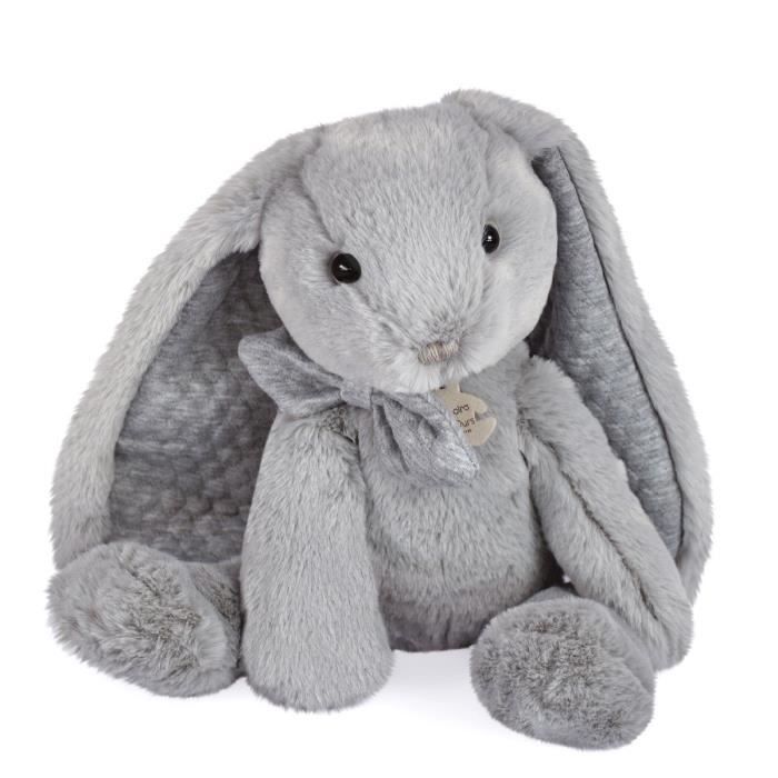 Peluche - HISTOIRE D'OURS - Lapin Preppy Chic - 40CM - Gris - Doux et moelleux
