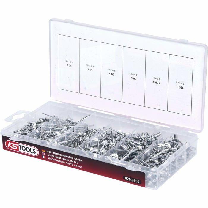 Assortiment de rivets - KSTOOLS - 400 pcs - Acier - Coffret plastique - 970.0150