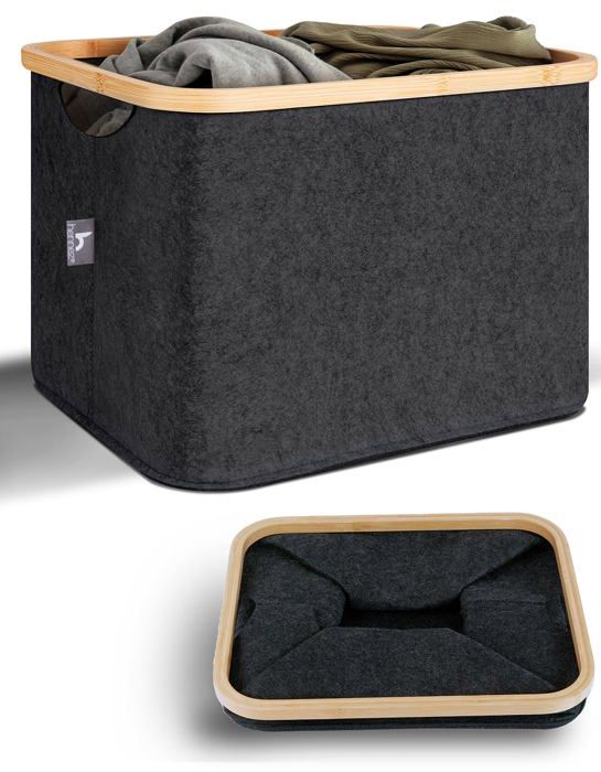 Panier de rangement - HENNEZ - Grand Panier Feutre 40L - Gris - Avec couvercle - Style contemporain — купить товар онлайн с бесплатной доставкой по всему миру!