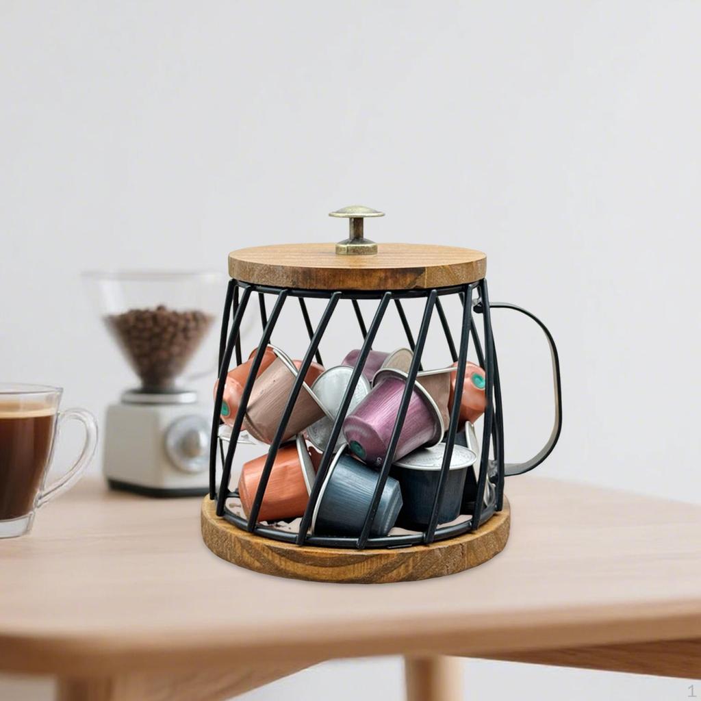 - 【Мастерство обработки железа】: Изготовленная из прочного железа и дерева, эта корзина для хранения кофейных капсул сочетает в себе долговечность и элегантность.. Он устойчив к изгибу, легко чистится и рассчитан на ежедневное использование.