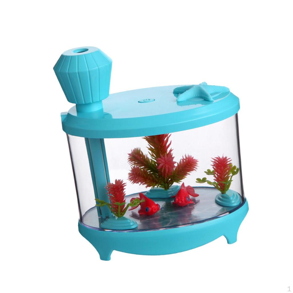 - 【Креативный дизайн】: Домашний увлажнитель воздуха выполнен в форме изящного аквариума с имитацией водных растений, он выглядит более элегантным и естественным.; объем резервуара для воды, 460 мл; выход тумана, 35 мл/ч+5 мл