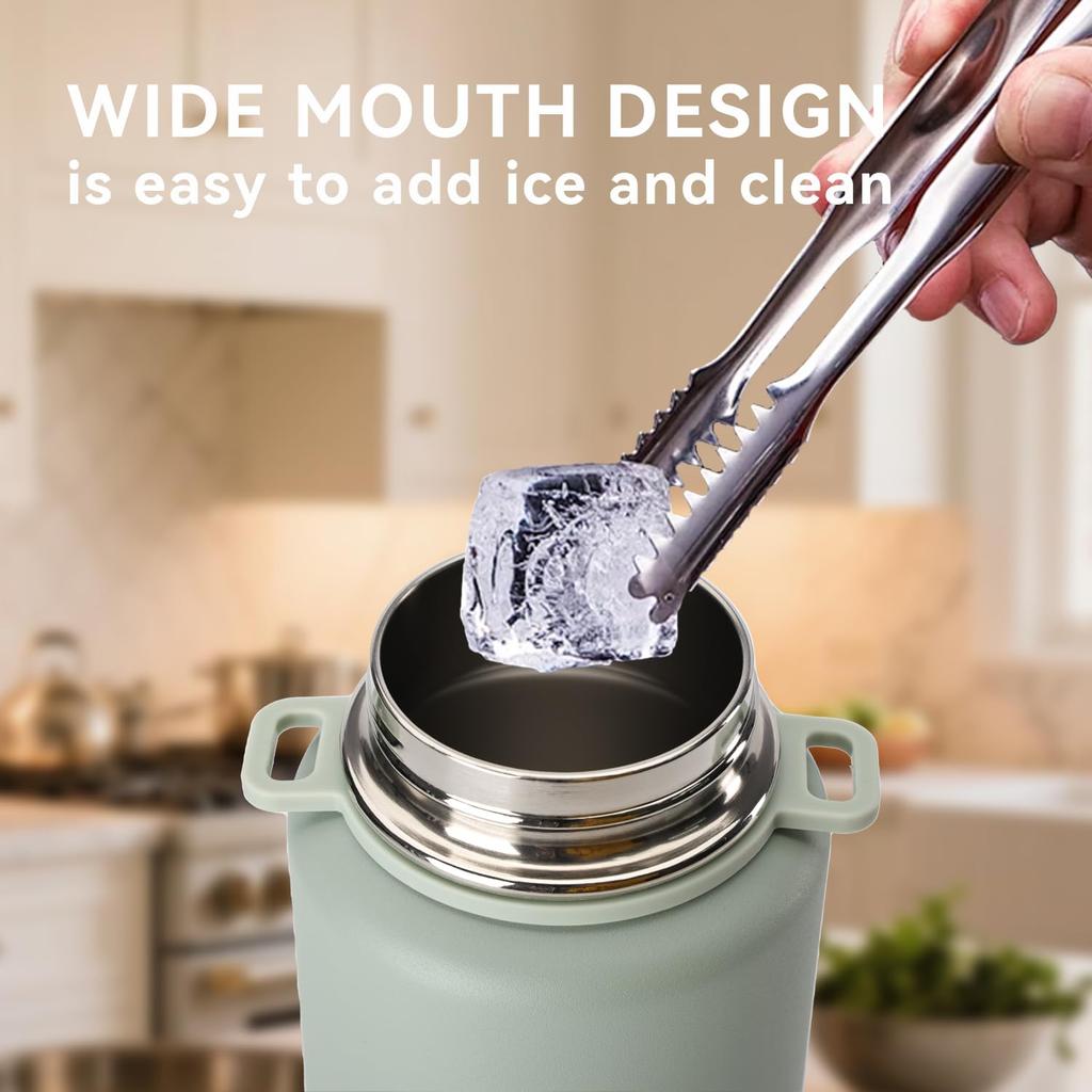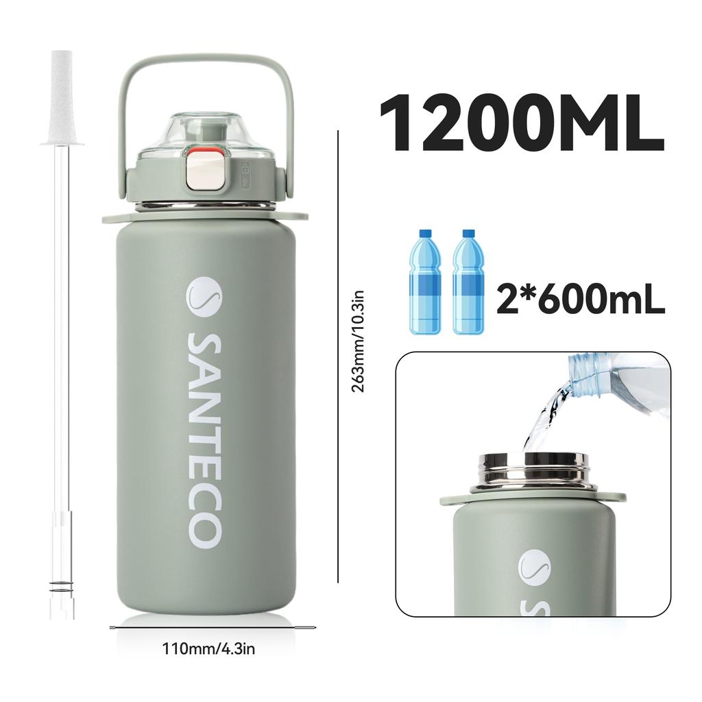 SANTECO Спортивная вакуумная термофляга с отстегивающимся плечевым ремнем, сохраняющая холод, и термос, совместимый со спортивной флягой для питья, широкое горлышко, пепельно-голубой, 1,2 л, ремешок,