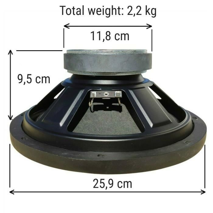1 MASTER AUDIO MA25W/8 woofer professionnel 25 cm 250 mm 10" 250 watt rms 500 watt max 8 ohm suspension en gomme 93 db, 1 pièce