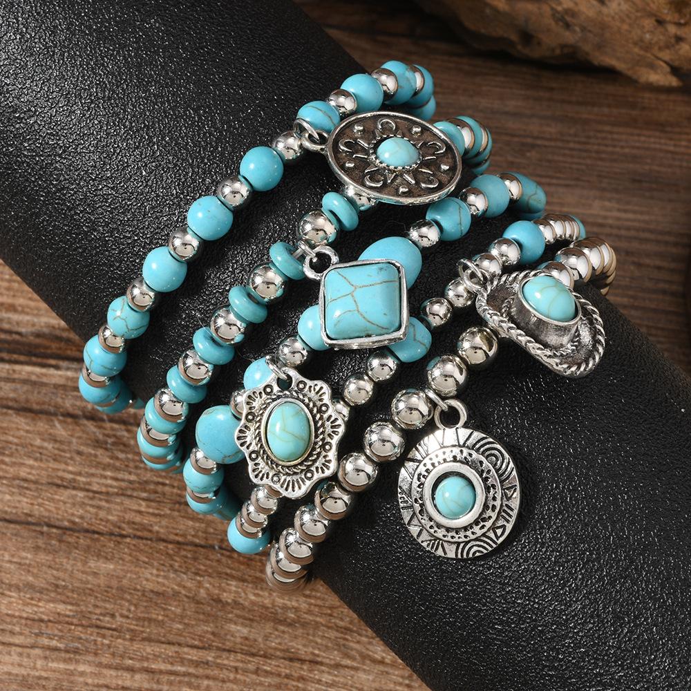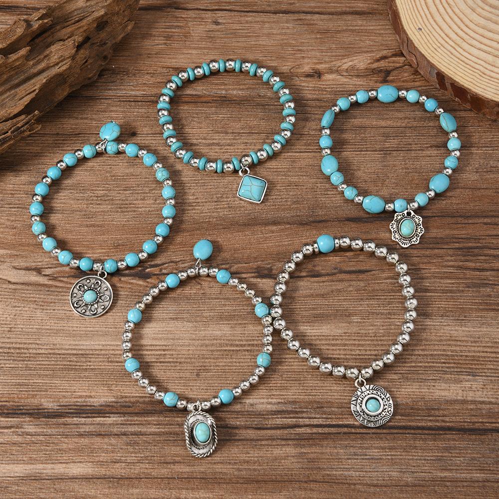 Женский браслет из бусин в винтажном бохо-стиле, ручной работы, кожаный эластичный браслет, модные аксессуары для отпуска для женщин, набор из 5 штук