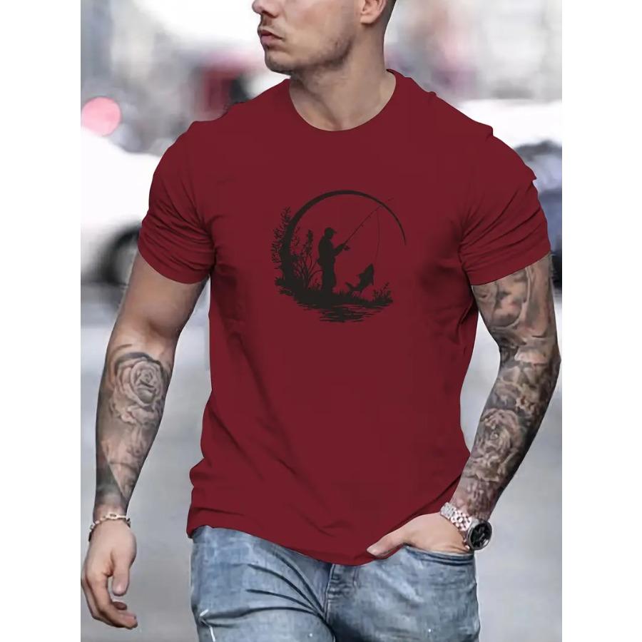 Мужская футболка с графическим принтом для рыбалки - Базовая футболка с круглым вырезом из 100% полиэстера, слегка тянущаяся, однотонная, летний повседневный топ из трикотажной ткани