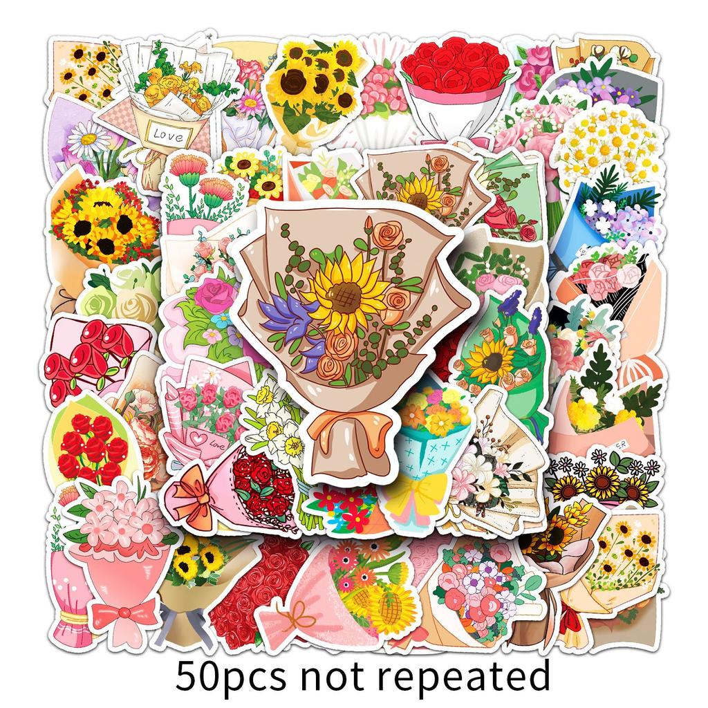 50 букетов дудл личность мультяшные маленькие свежие цветы DIY наклейки на стакан для воды, мобильный телефон, чемодан, водонепроницаемые