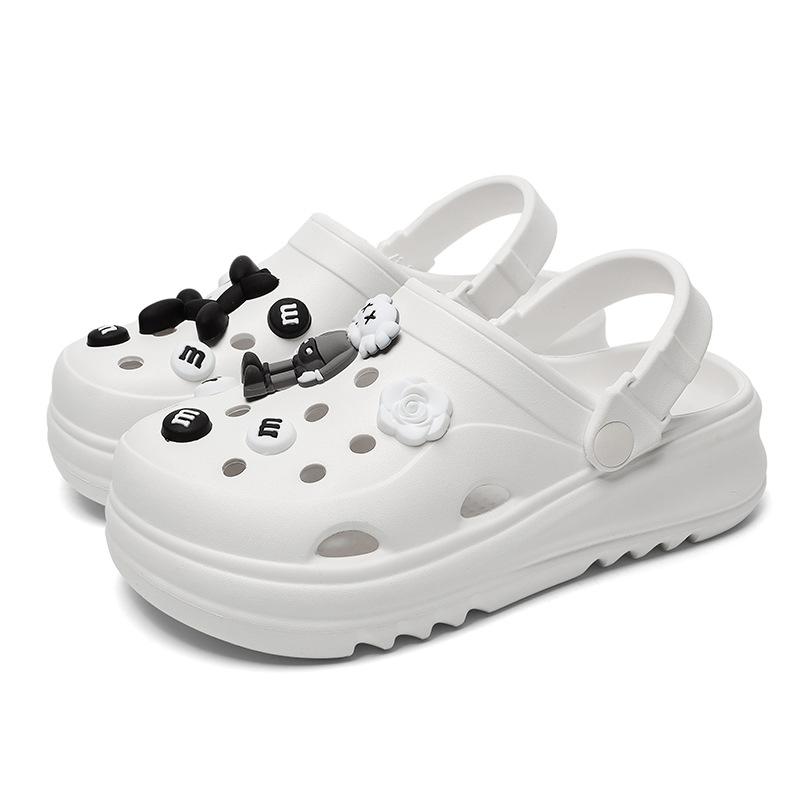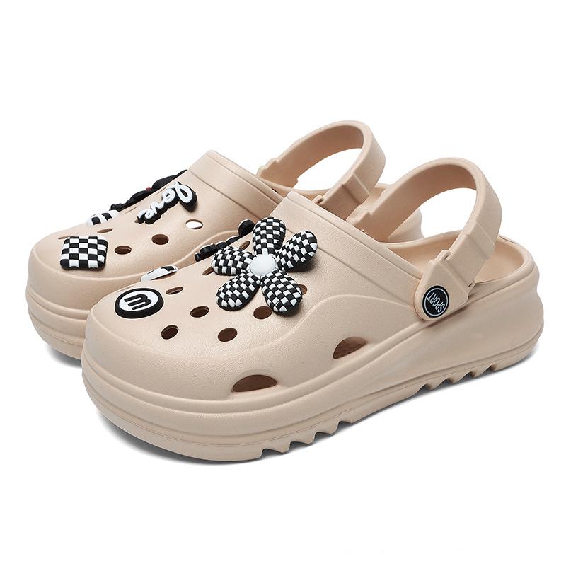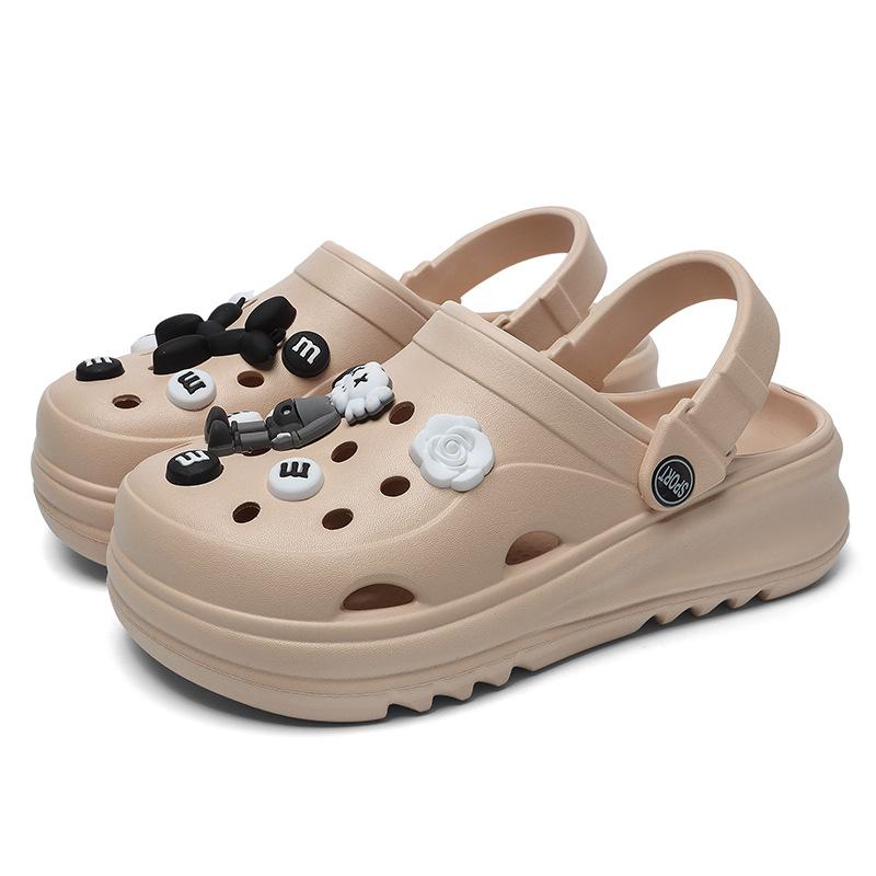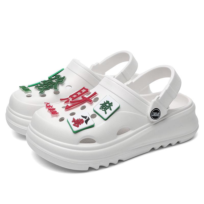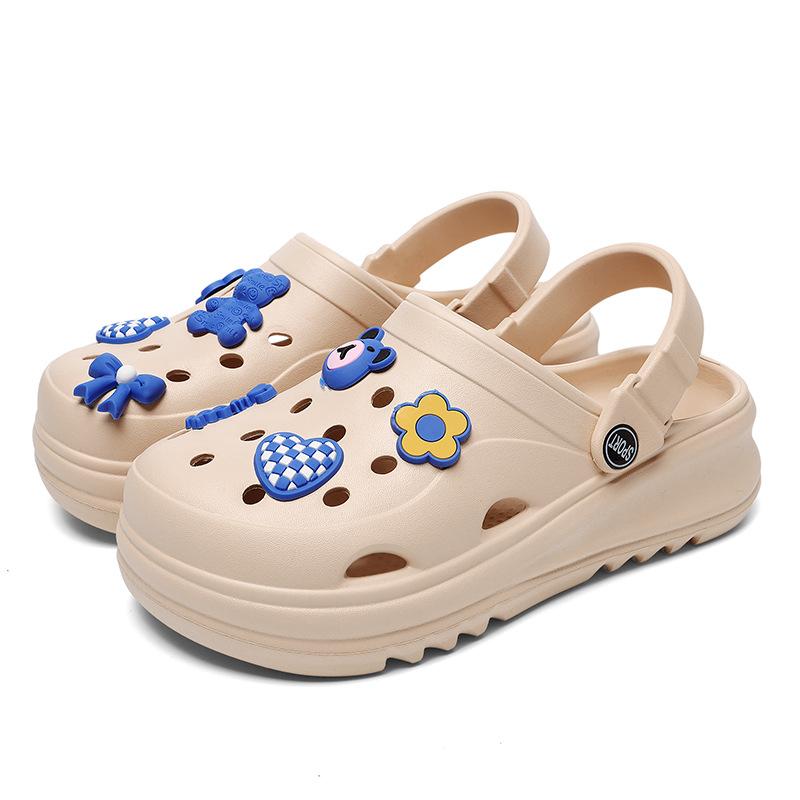 Летняя женская дышащая обувь с отверстиями, нескользящие тапочки на толстой подошве из ЭВА, для пляжа, прохладные шлепанцы