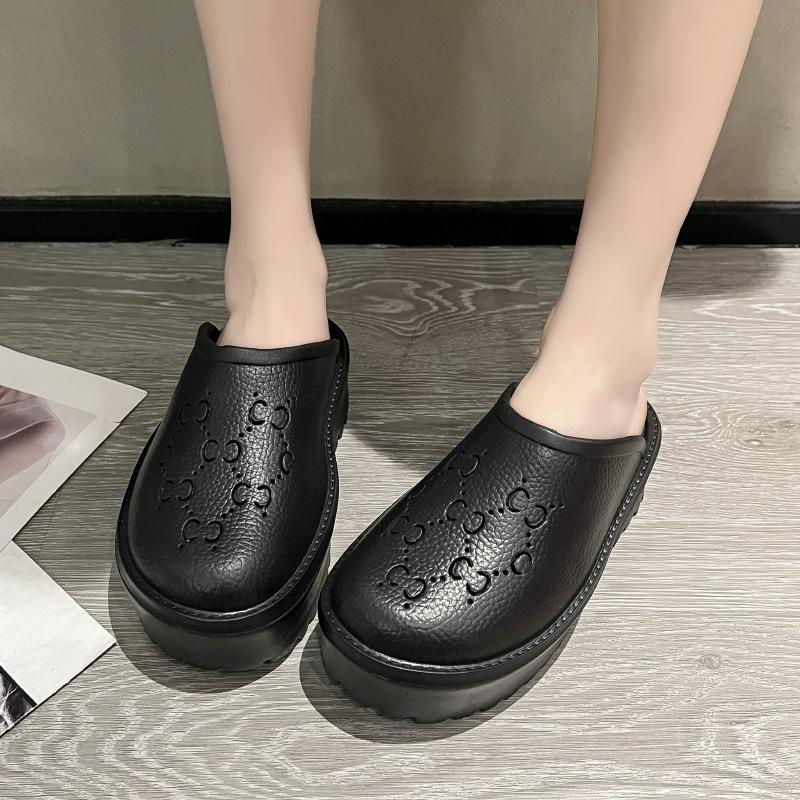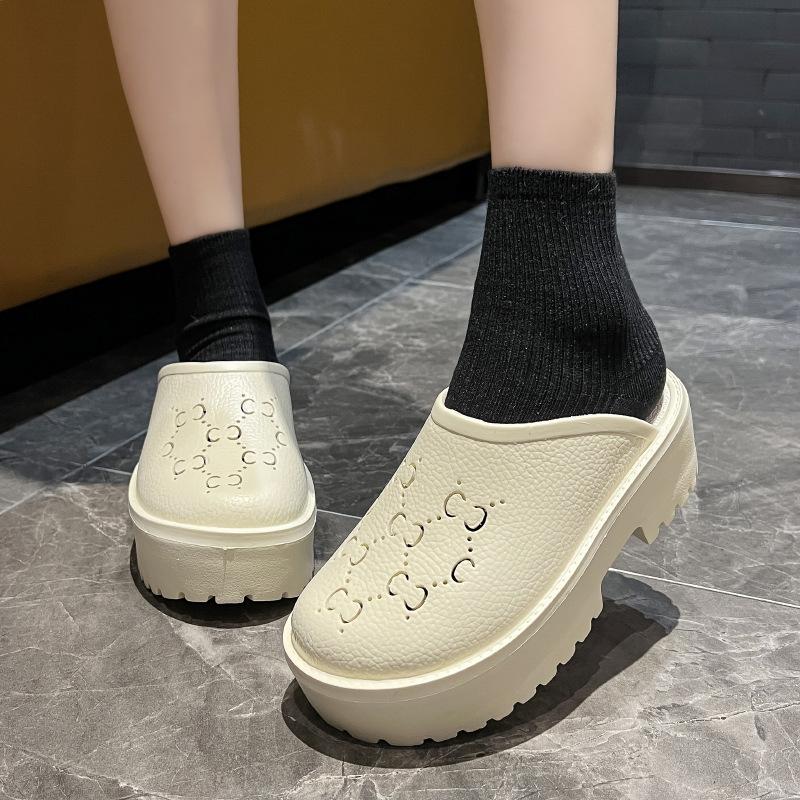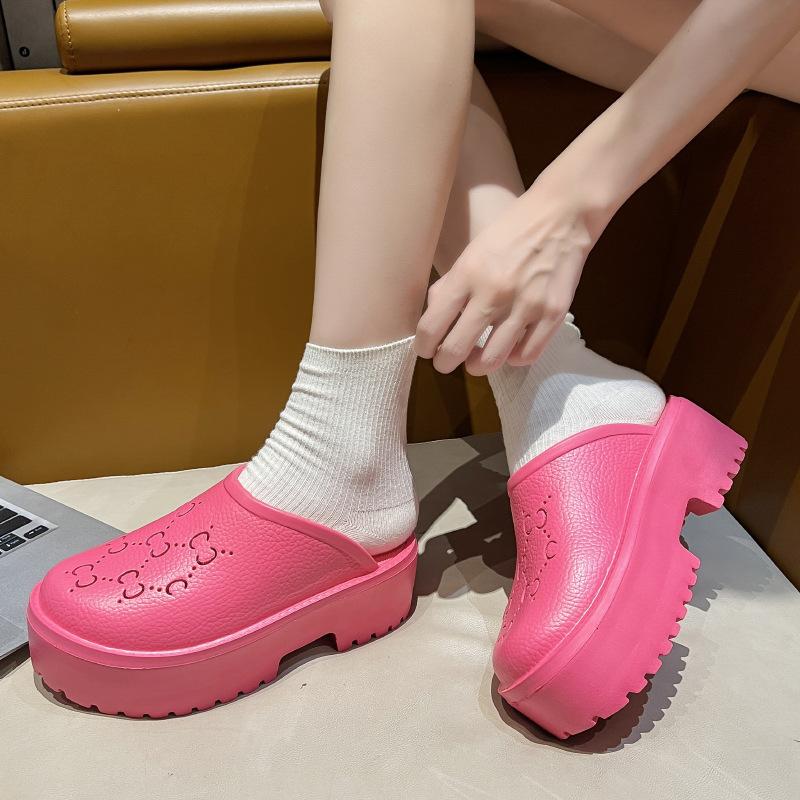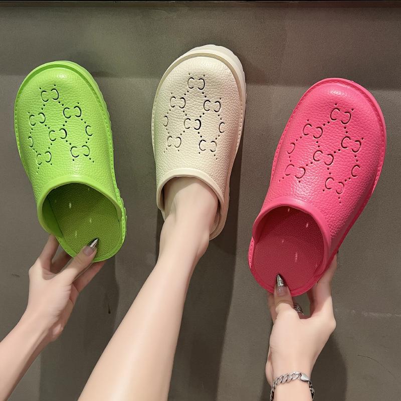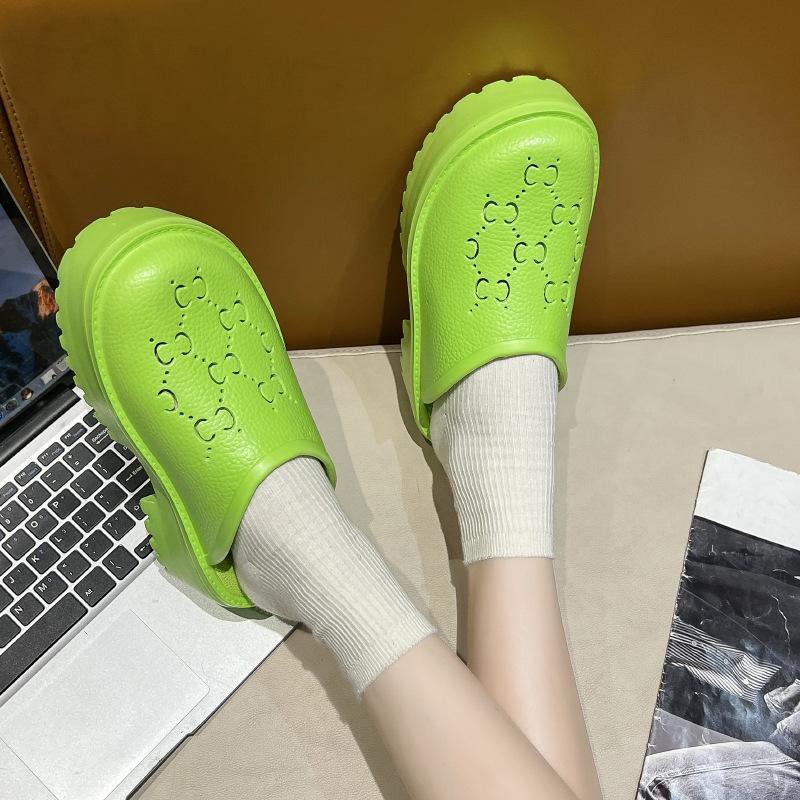 G домашние дырчатые туфли весна и лето новые буквы полые матовые резные голова сумки большая голова толстая подошва шлепанцы