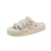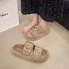 Пряжка белые пушистые тапочки на толстой подошве женская обувь носить новый интернет знаменитость теплая кекс одно слово плюшевые хлопковые швабры