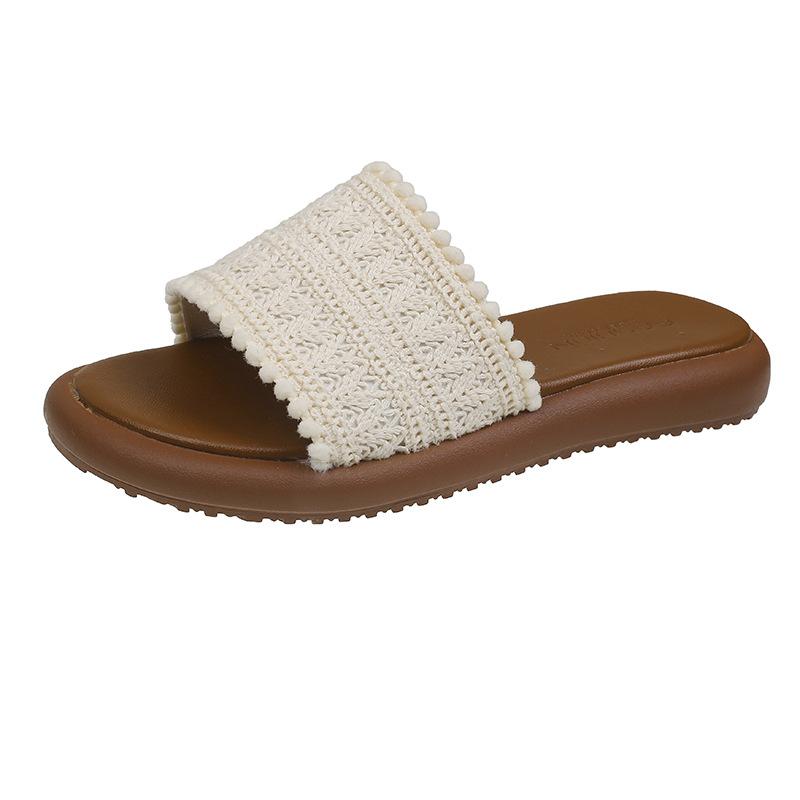 Ethnic style slippers women's outer wear summer new cross strap Roman sandals student flat bottom non-slip one-word