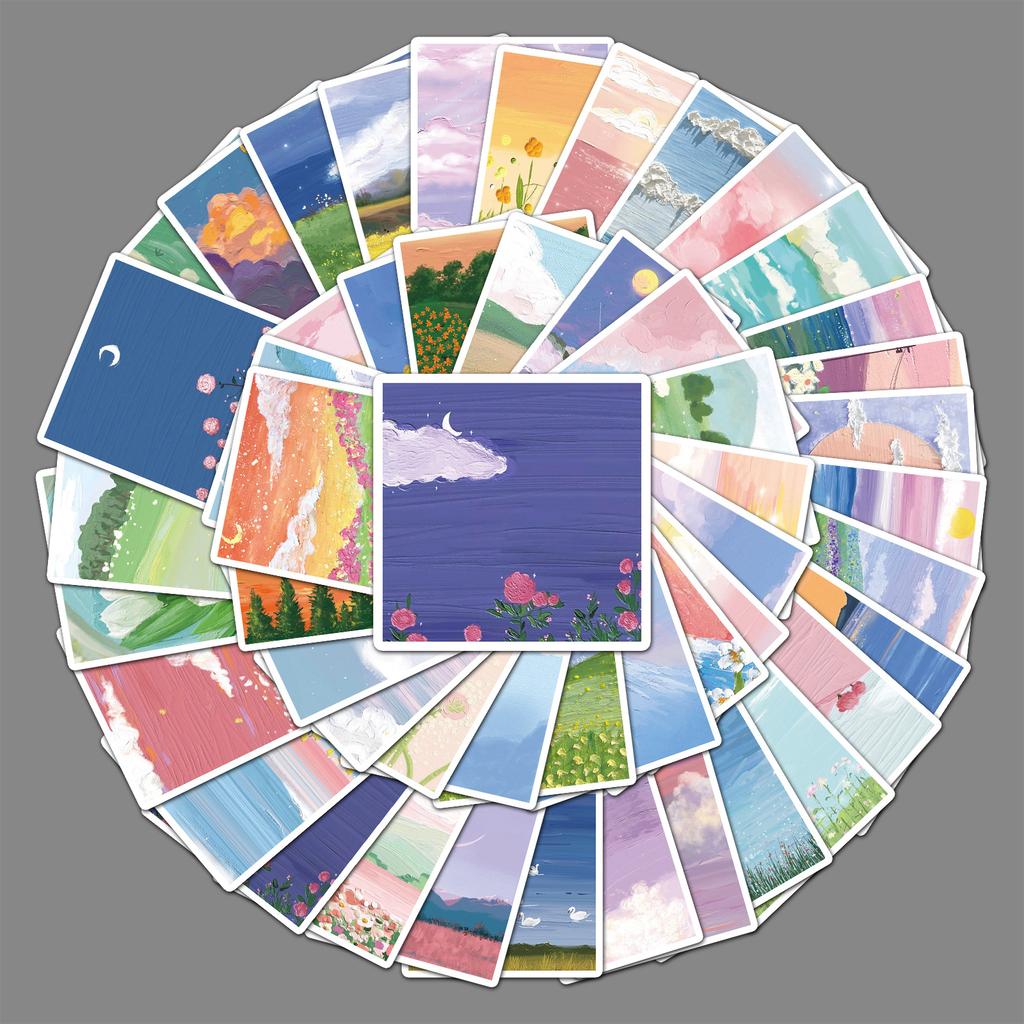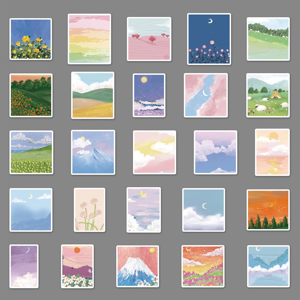 50 Пейзажных Масляных Картин Граффити Персонализированные Свежие в Стиле Инс DIY Наклейки для Украшения Скейтборда и Стакана для Воды