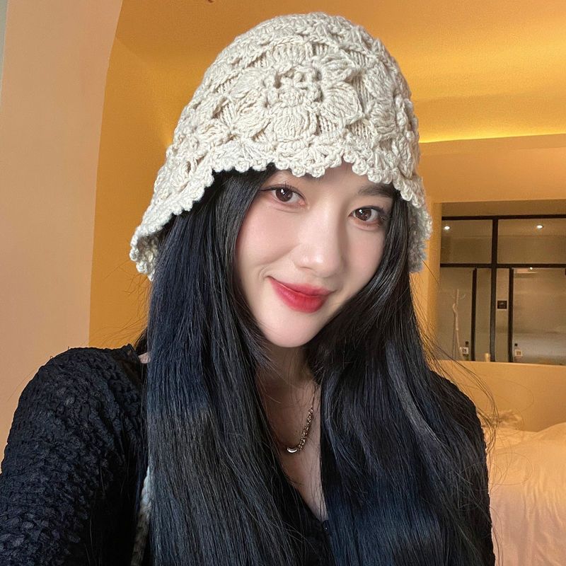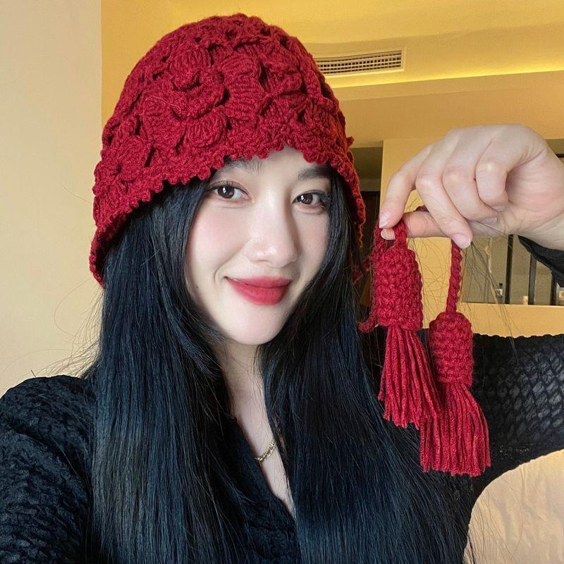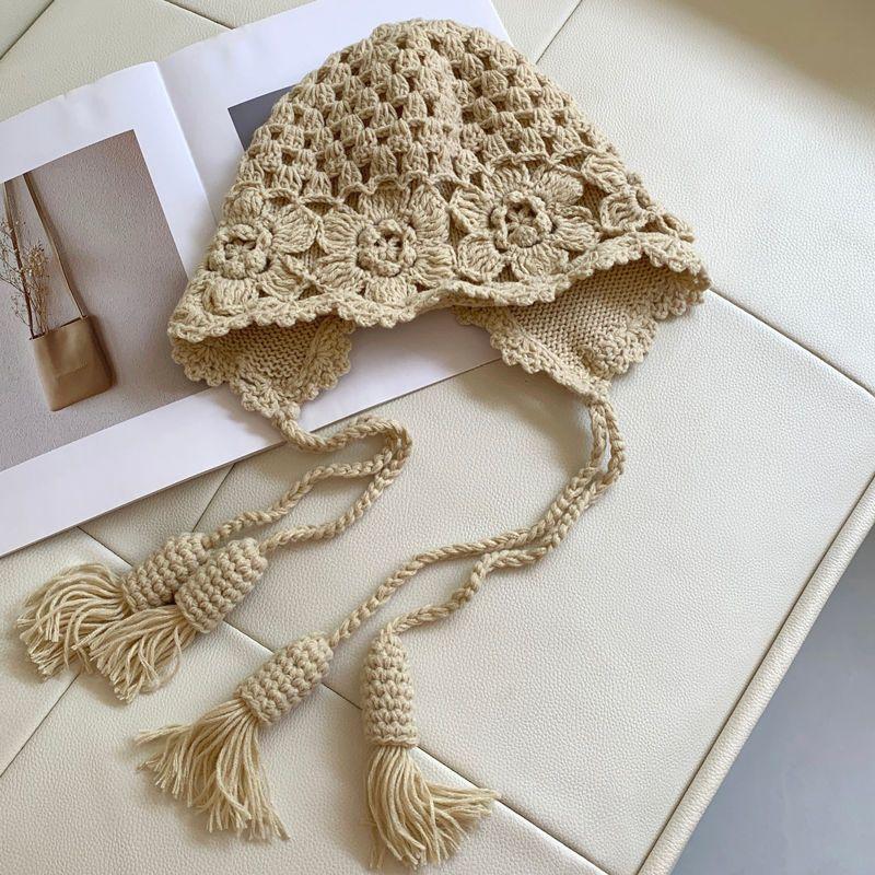 Женская мода Ручной работы Плетёная Ажурная Повязка на голову Шляпа Крючком Этнический стиль Кисточка Защита ушей Ремешок Мешковатая Жемчужная шляпа