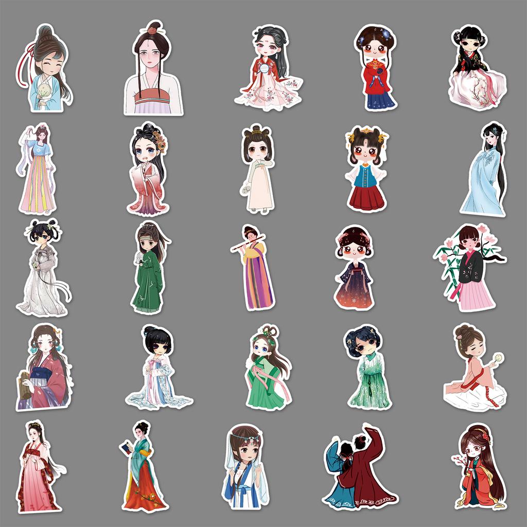 51 Мультяшная Милая Девушка в Ханфу Китайский Стиль DIY Украшение Набор Гука Чемодан Скейтборд Автомобиль Водонепроницаемые Наклейки