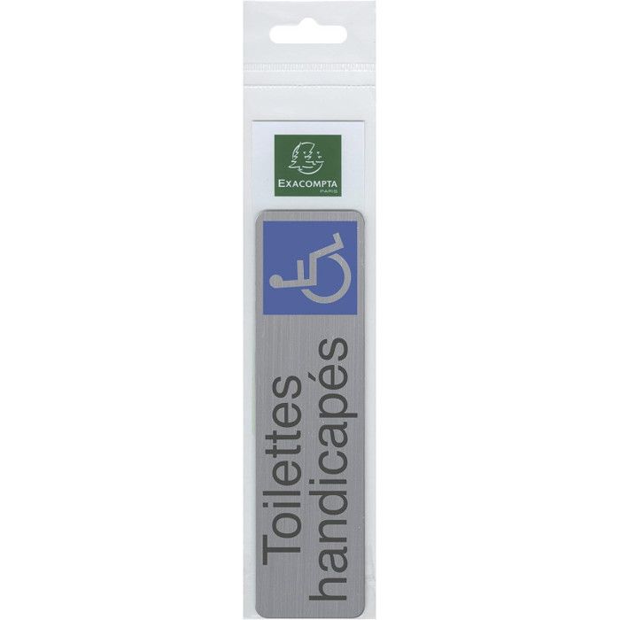 Plaque adhésive - EXACOMPTA - Toilettes handicapés - Imitation alu - 16,5x4,4cm - Signalétique