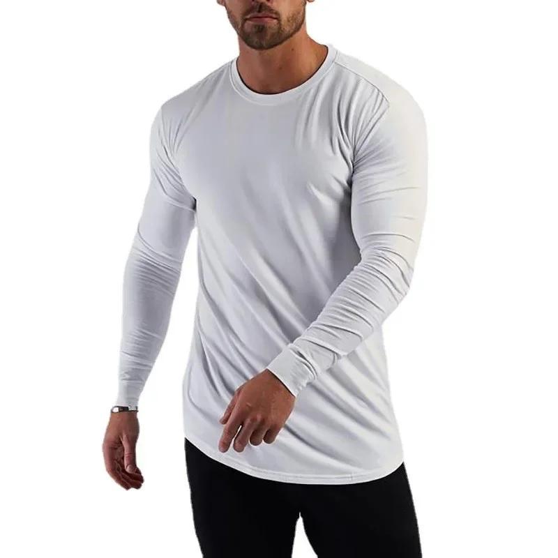 Muscleguys Осенние футболки с длинным рукавом для бега, мужская хлопковая одежда для зала, приталенные футболки, мужские весенние футболки для бодибилдинга, фитнес-футболки, топы