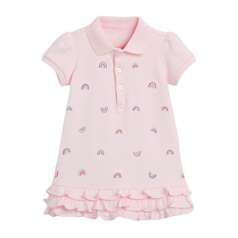 Новое летнее хлопковое платье принцессы розового цвета для девочек, с коротким рукавом, детские платья из 100% хлопка, униформа для детского сада