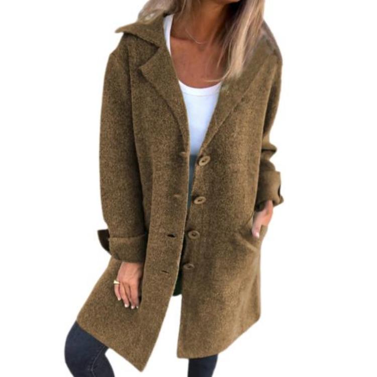 Женское осенне-зимнее шерстяное пальто свободного кроя средней длины, однотонное, с отложным воротником, однобортное, с длинными рукавами и карманами, куртка для работы, свиданий