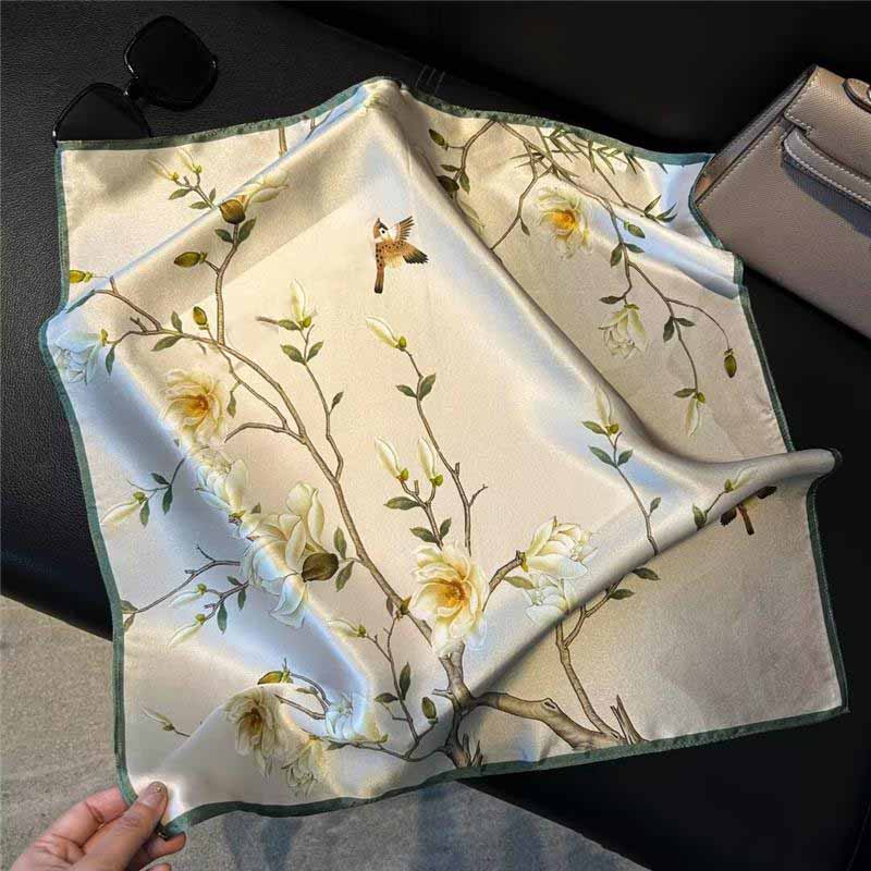 53x53см 100% Шарф из тутового шелка Роскошная квадратная бандана для волос Элегантная повязка на голову Шейный платок Солнцезащитная шаль для женщин